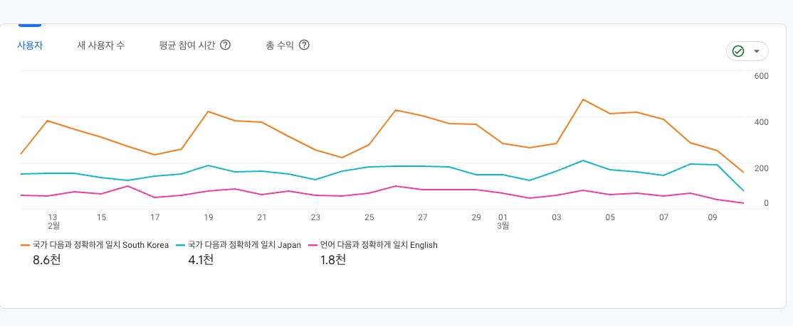 한국 신규유저 | 일본 신규유저 | 미국 & 캐나다 | |