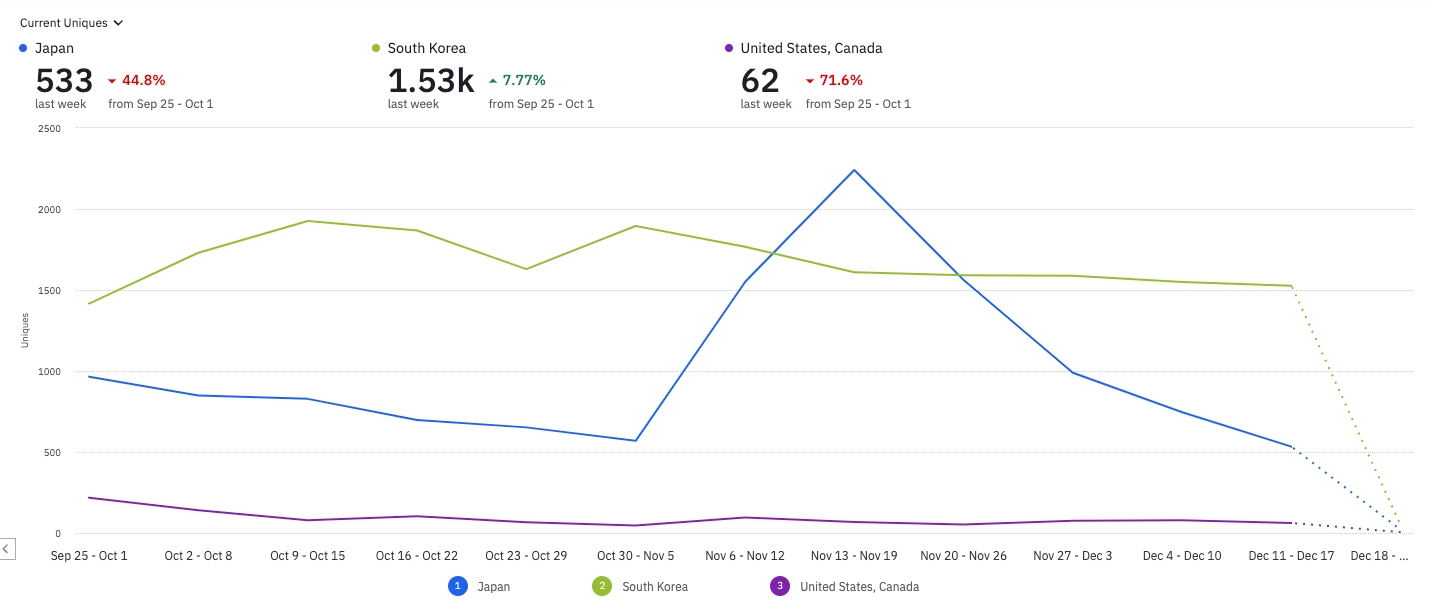 한국 신규유저 | 일본 신규유저 | 미국 & 캐나다 | |