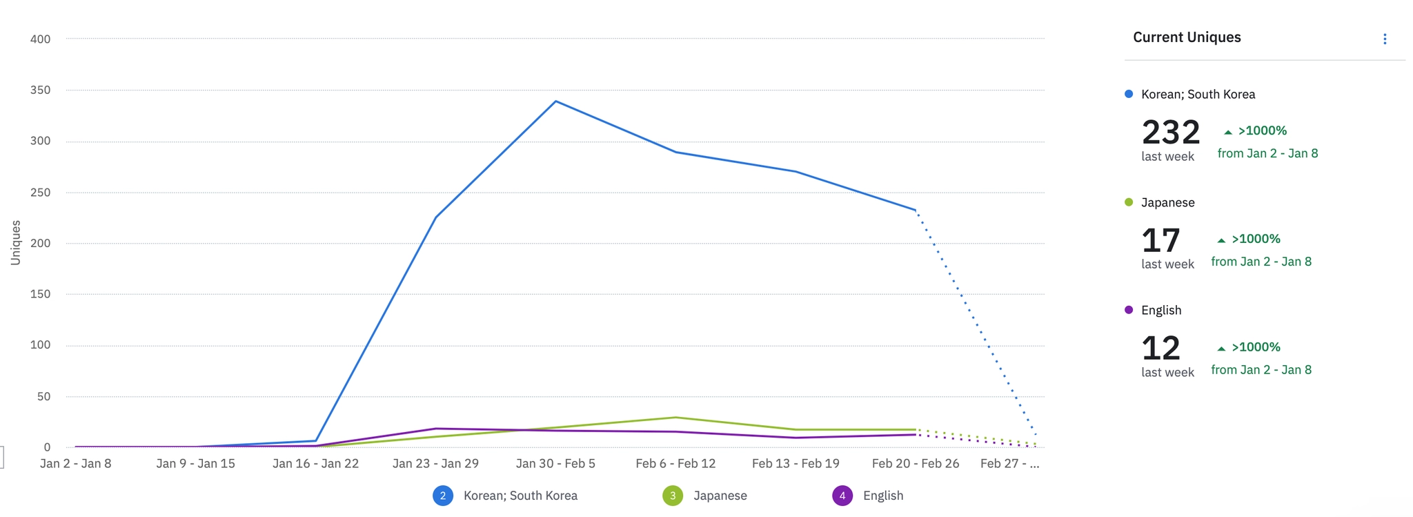 1월 2주차 | 2546 | ₩0 | 730 | ₩700,832 | 342 | -27.08% | 388 | 5.43% | ||