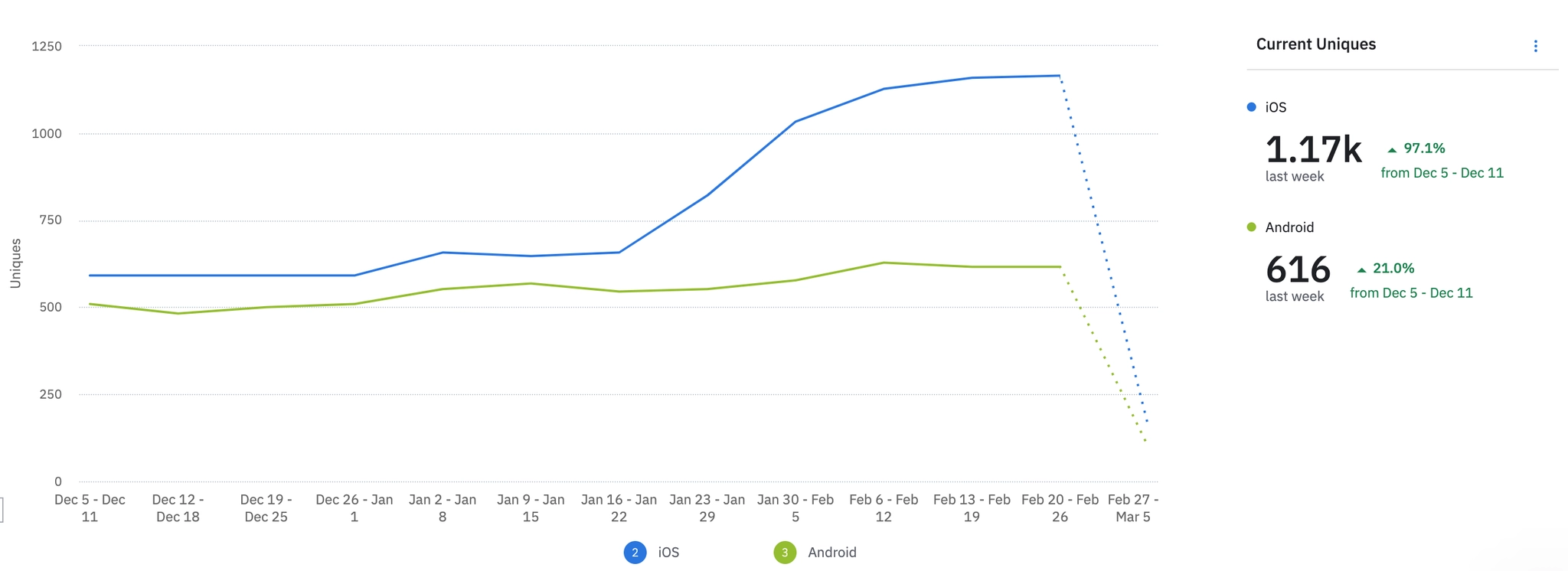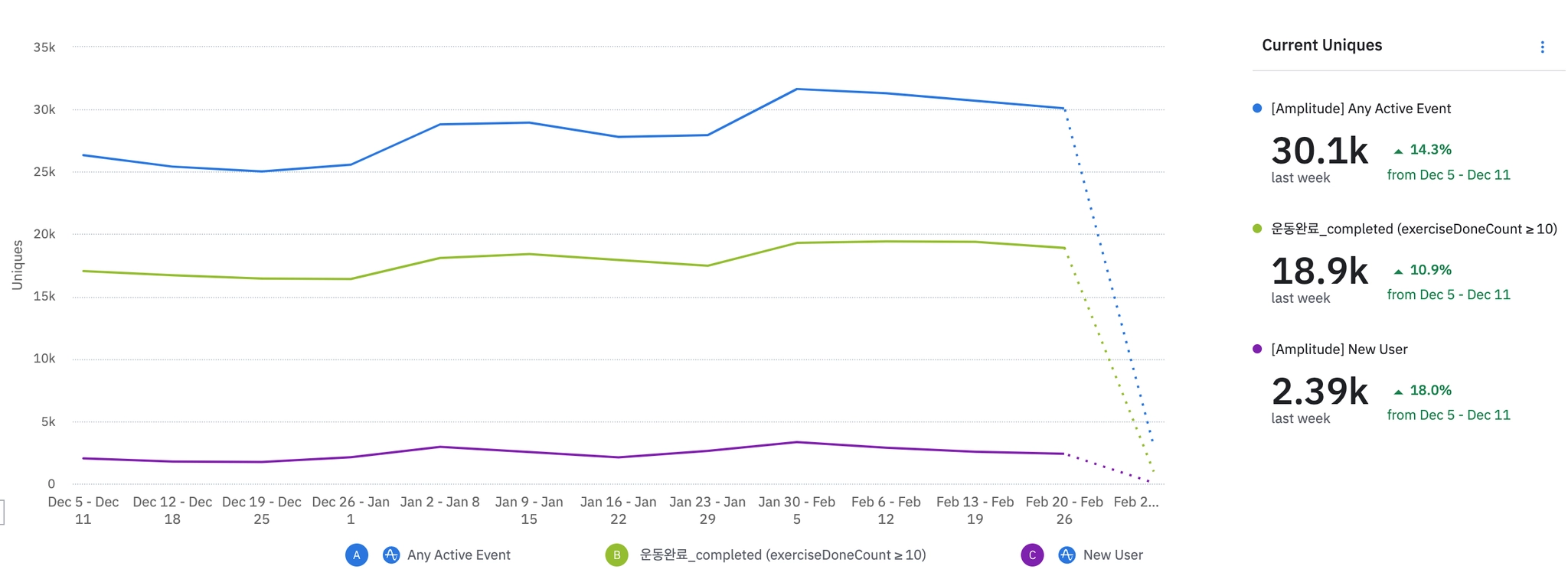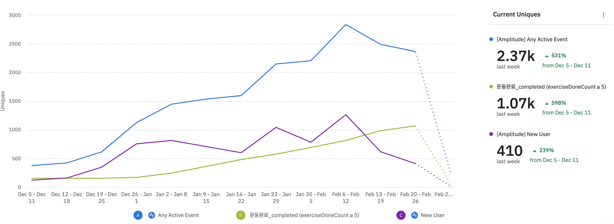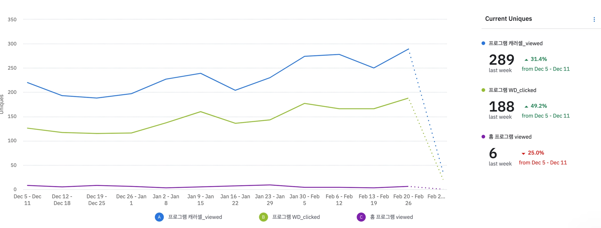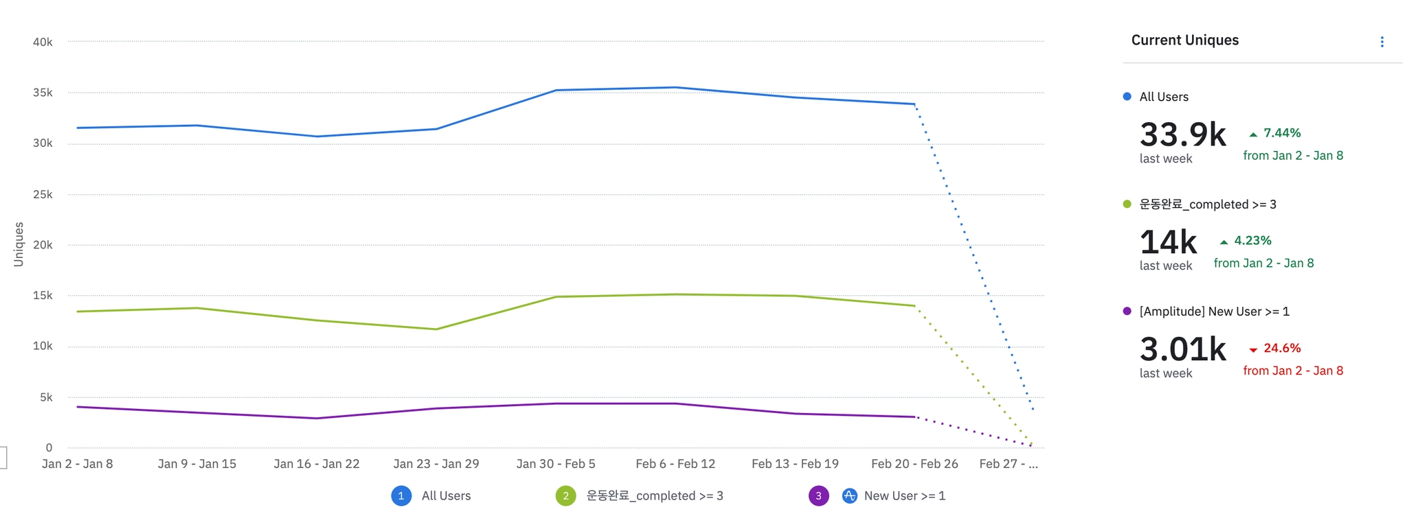 1월 3주차 | 2083 | ₩35,000 | 613 | ₩666,904 | 261 | -23.68% | 352 | -9.28% | ||