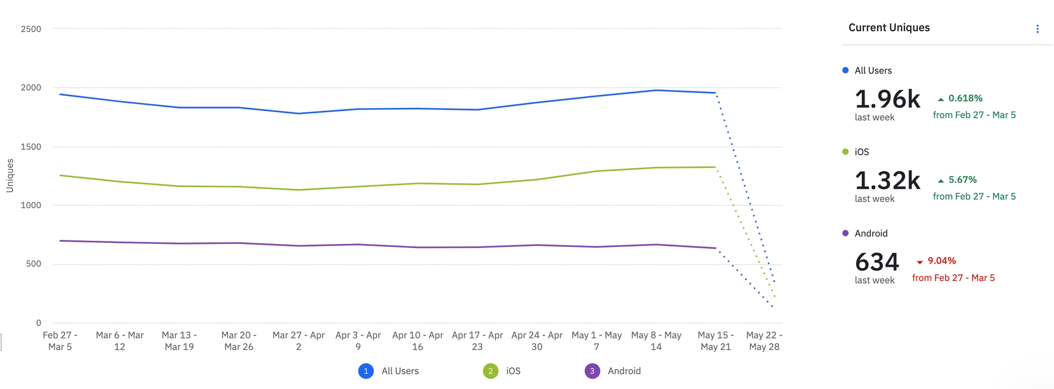 Organic 다운로드는 152명까지 내려간 것으로, → 아무것도 하지 않은 경우 150명대로 내려간다.