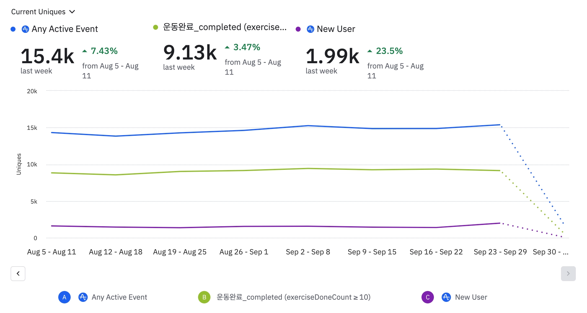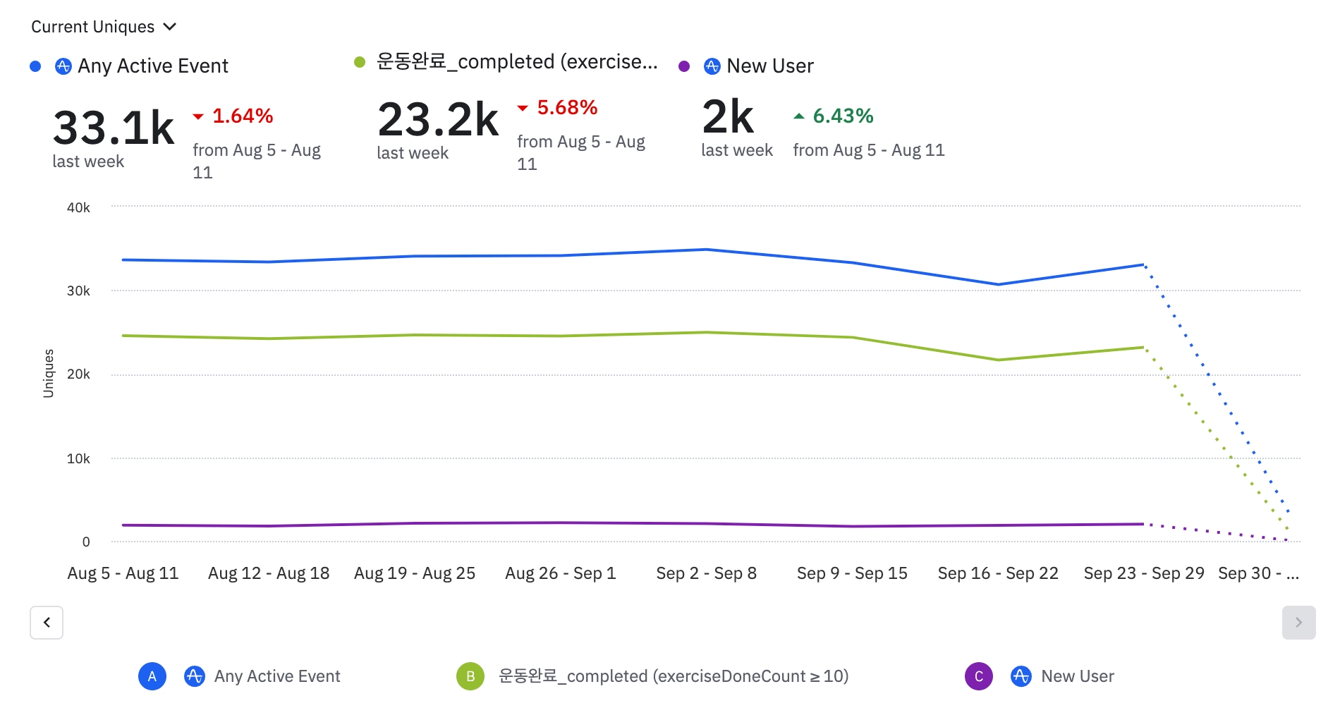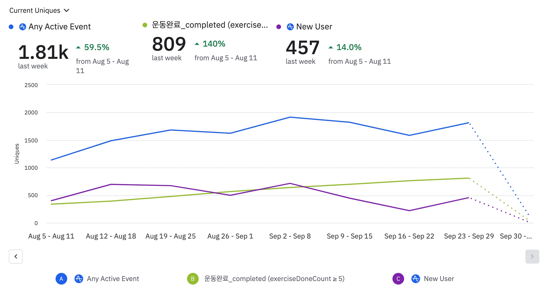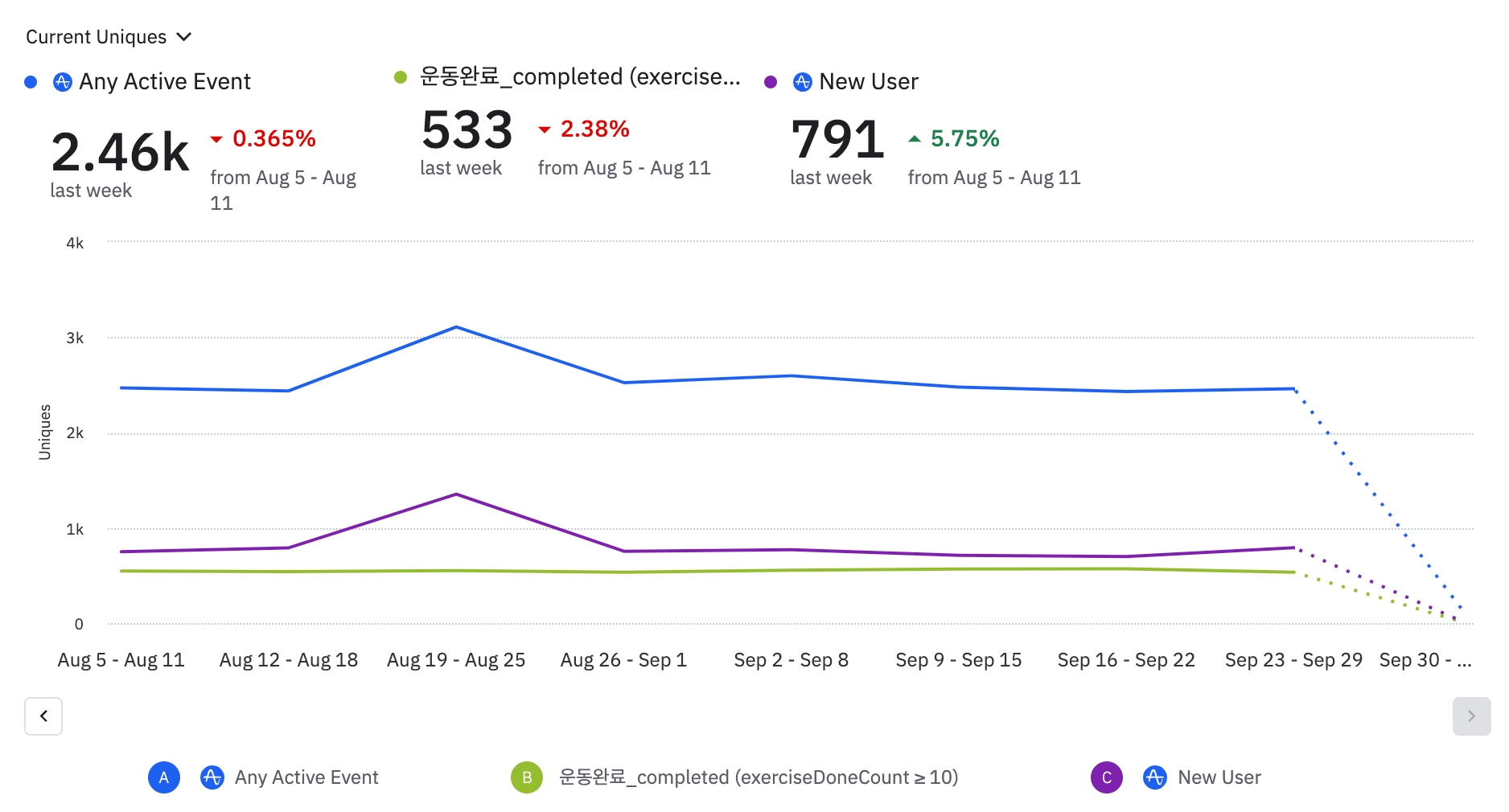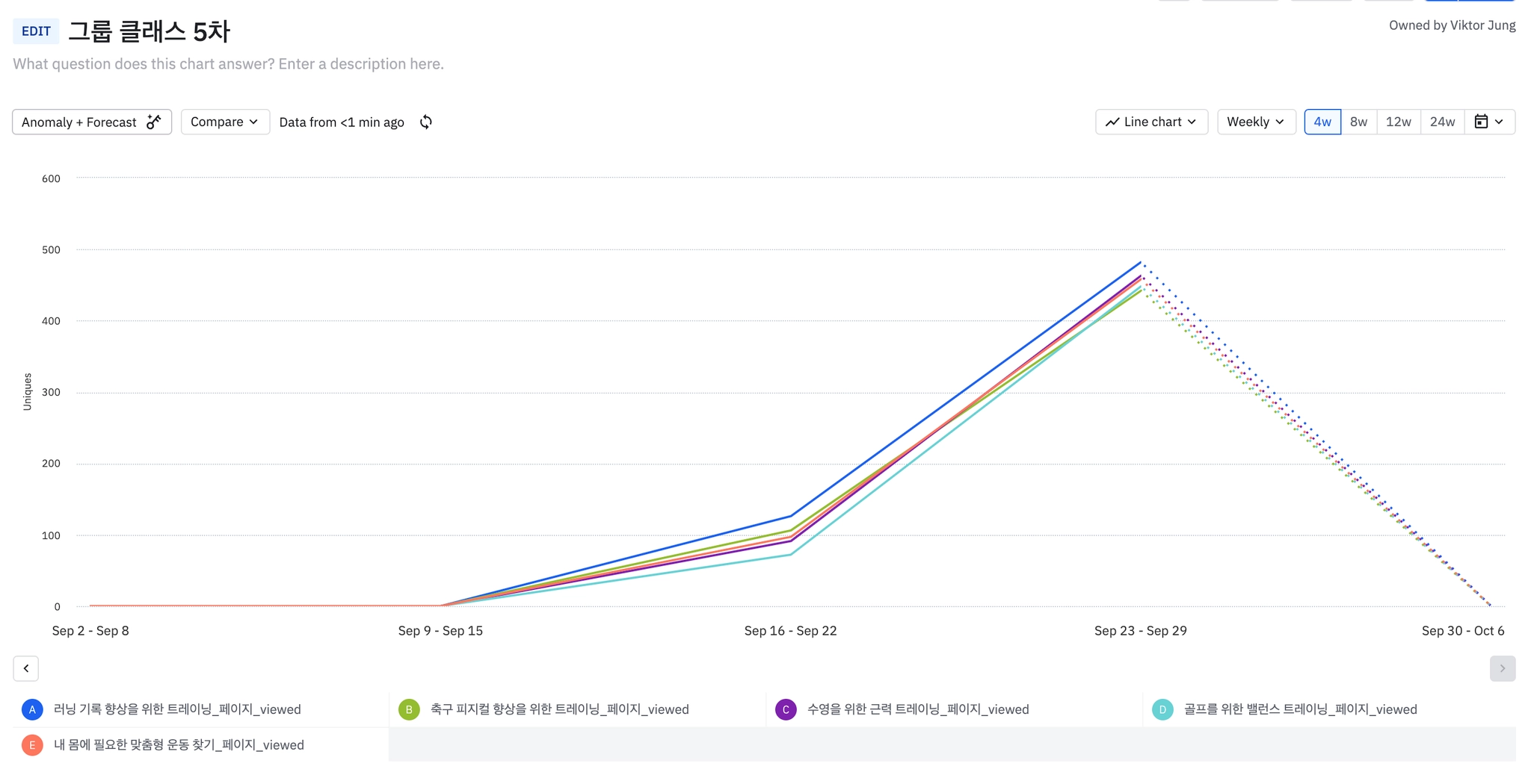 목표: 400명/week(그룹 수업 유저 현황)