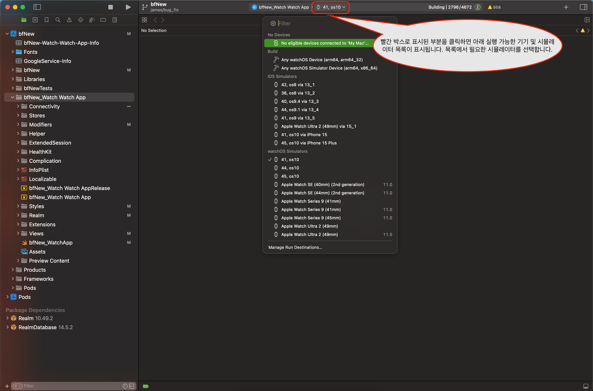 실행할 시뮬레이터 or 디바이스 선택하는 방법