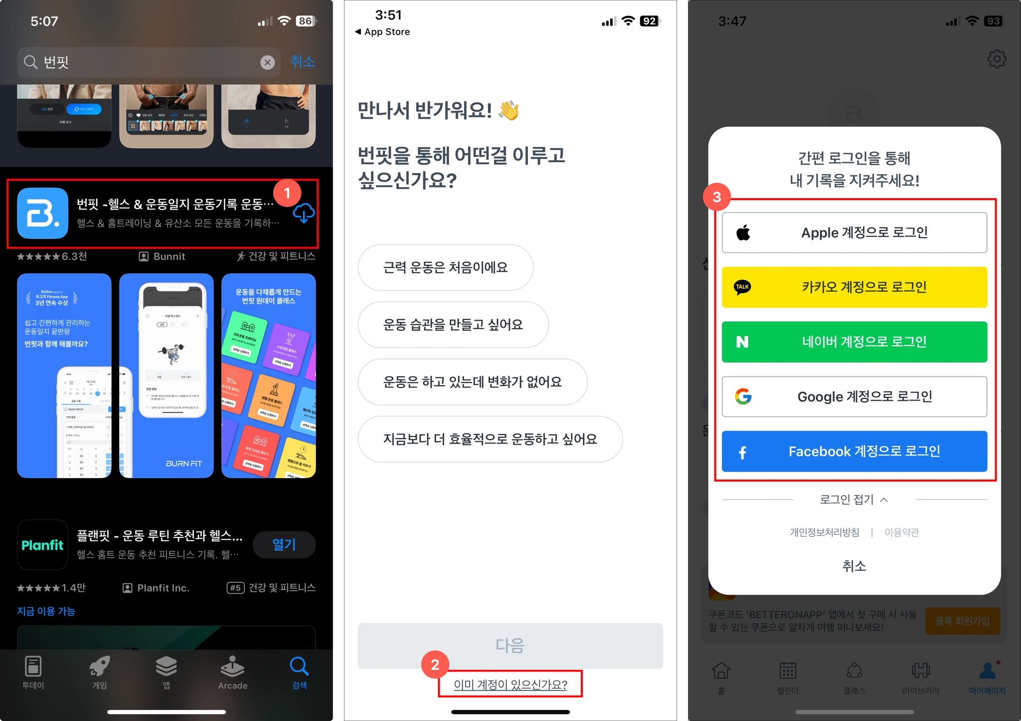 번핏 앱을 설치합니다.