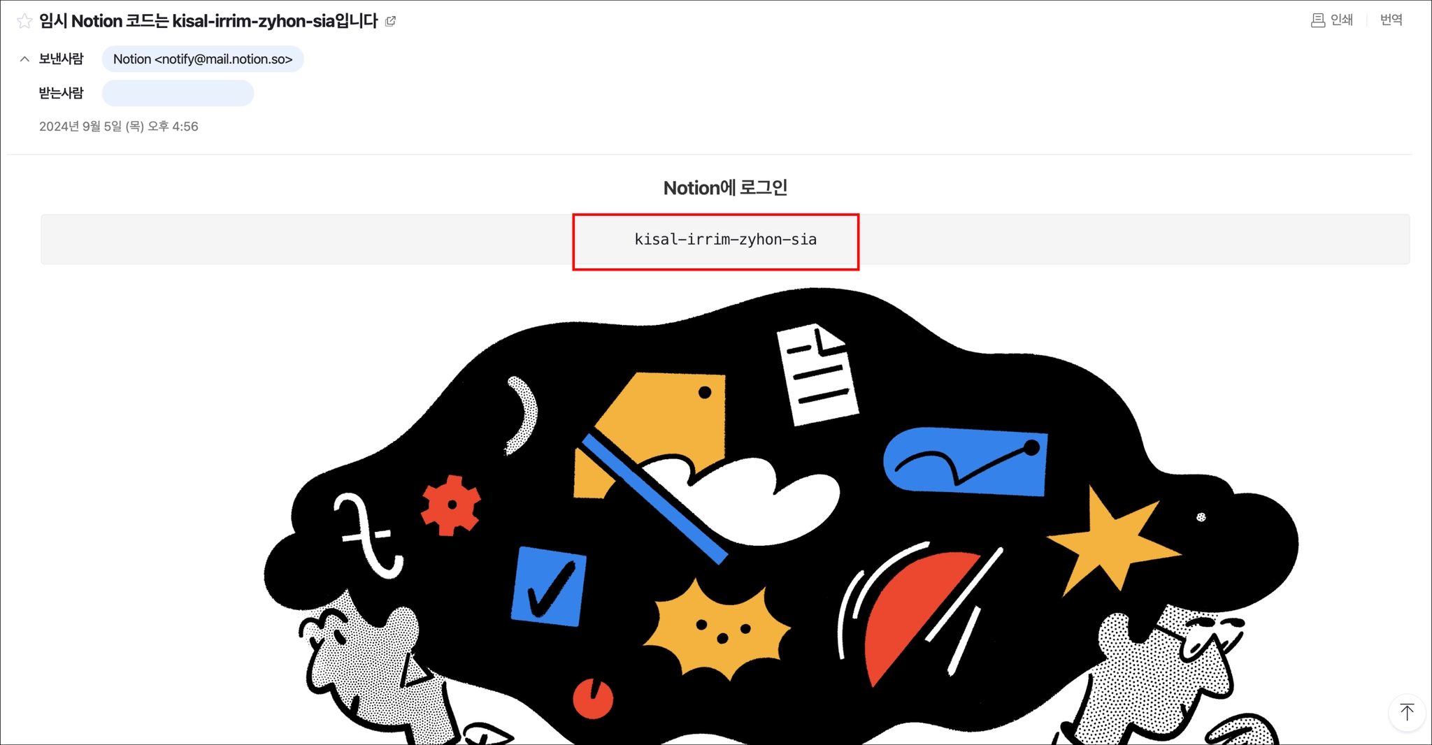 주의 ! Google로 인증하기 , Apple로 인증하기 , SSO (통합로그인) 으로 로그인 시 계정이 달라져 노션 페이지 이용이 불가능할 수 있으니 꼭 임시 코드로 로그인 합니다.