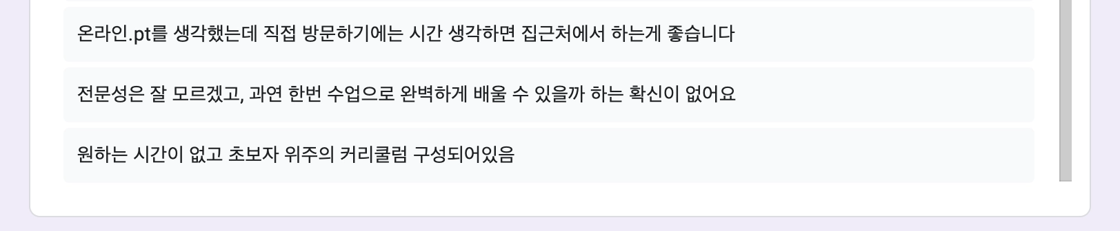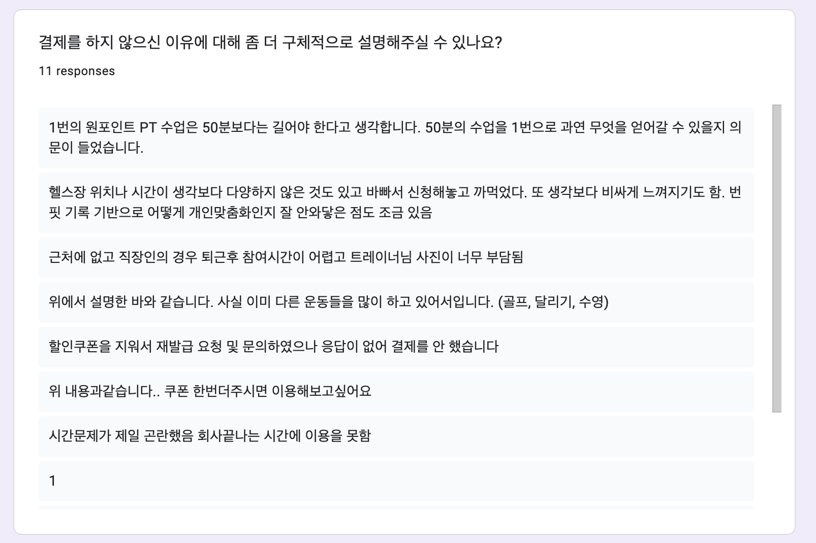 앱내 유저 & 카톡방 유저 원포인트PT 설문 진행 및 분석