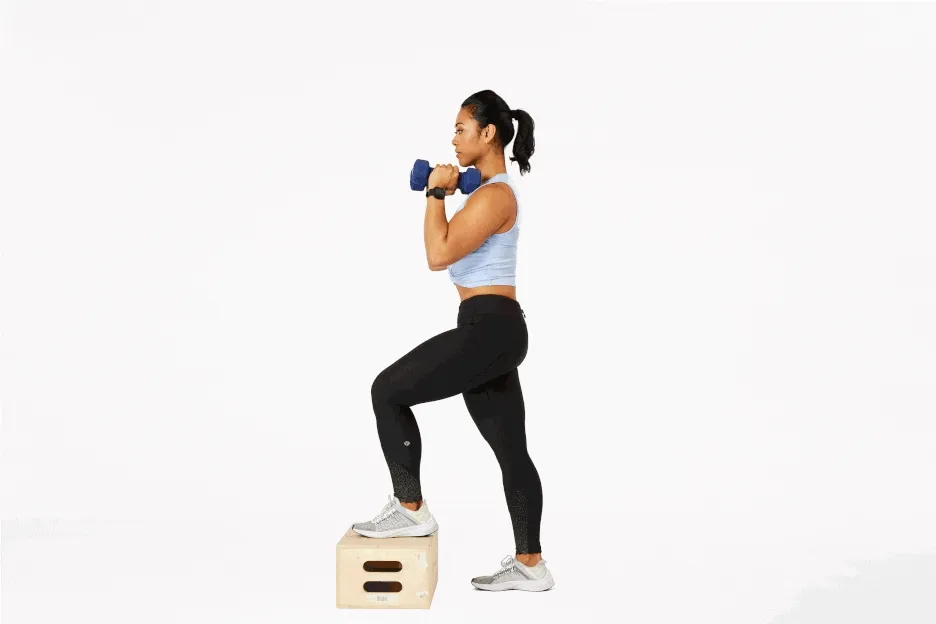 3)ダンベルステップアップ 10〜20回、 3セット