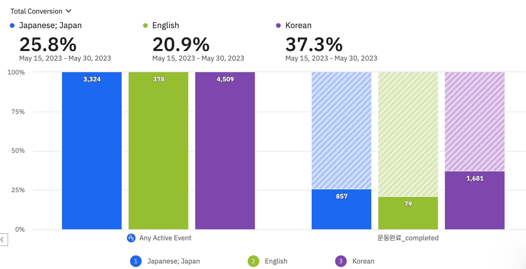 신규 유저 퍼널 분석 (일본의 경우 8%, 한국은 1% 증가함)