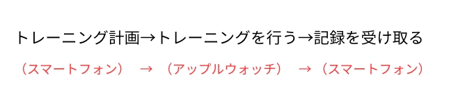 現在、アップルウォッチの利用は、トレーニング計画を作成した後、該当計画をアップルウォッチに転送し、転送したトレーニングをアップルウォッチで行った後、再びスマートフォンに転送する形で行うことができます。