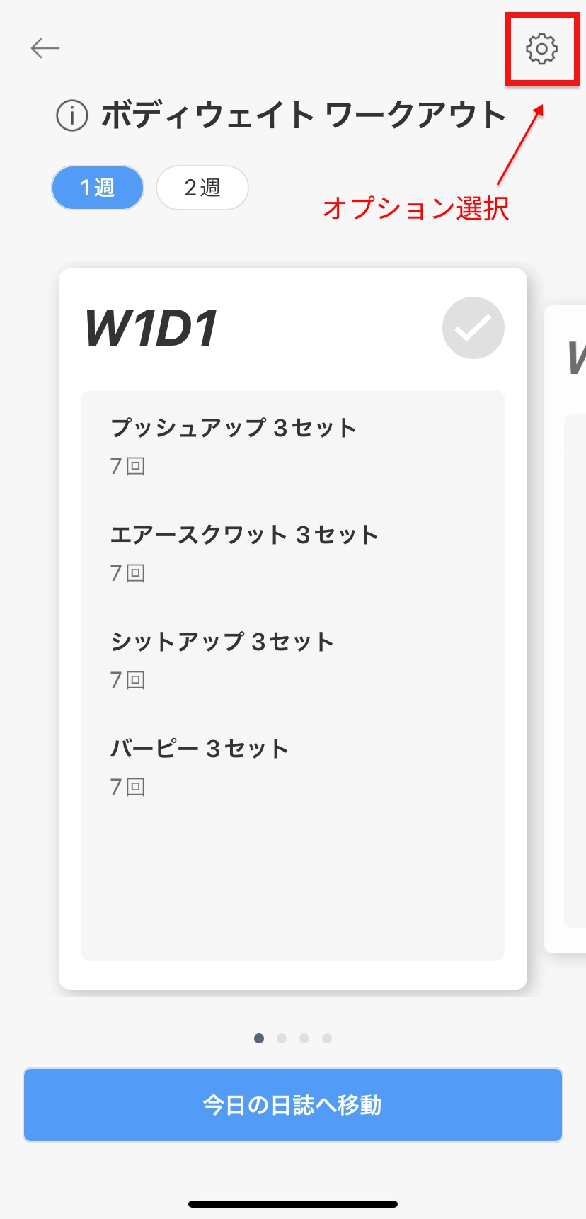 プログラムをスタートする過程で入力する設定により、最小で8週間、最大で12週間のプログラムが作成されます。 途中でプログラムを変更するよりは、最初からプログラム設定をやり直すことをおすすめします。 ただ、プログラムの実施中に変更できる機能がないわけではありませんので、変更したい方のために変更方法を下記の通りお伝えいたします!