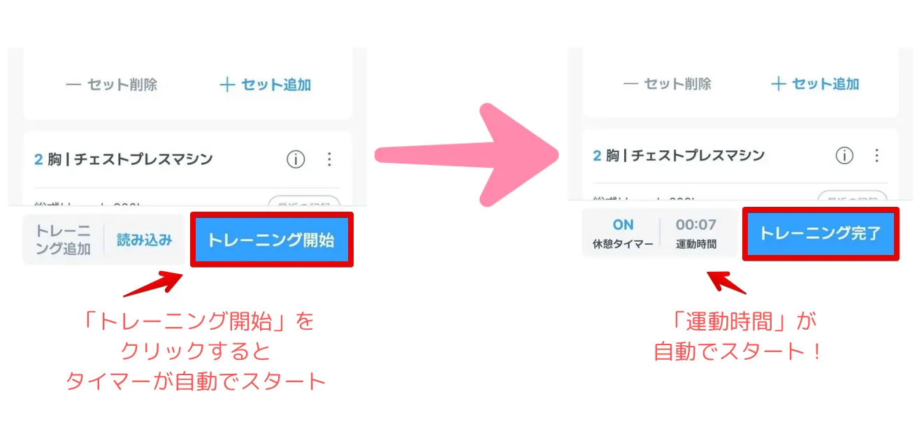 トレーニング計画を立て、「トレーニング開始」をクリックするとタイマーが自動でスタート