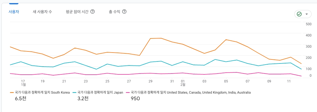 한국 신규유저 | 일본 신규유저 | 미국 & 캐나다 | |