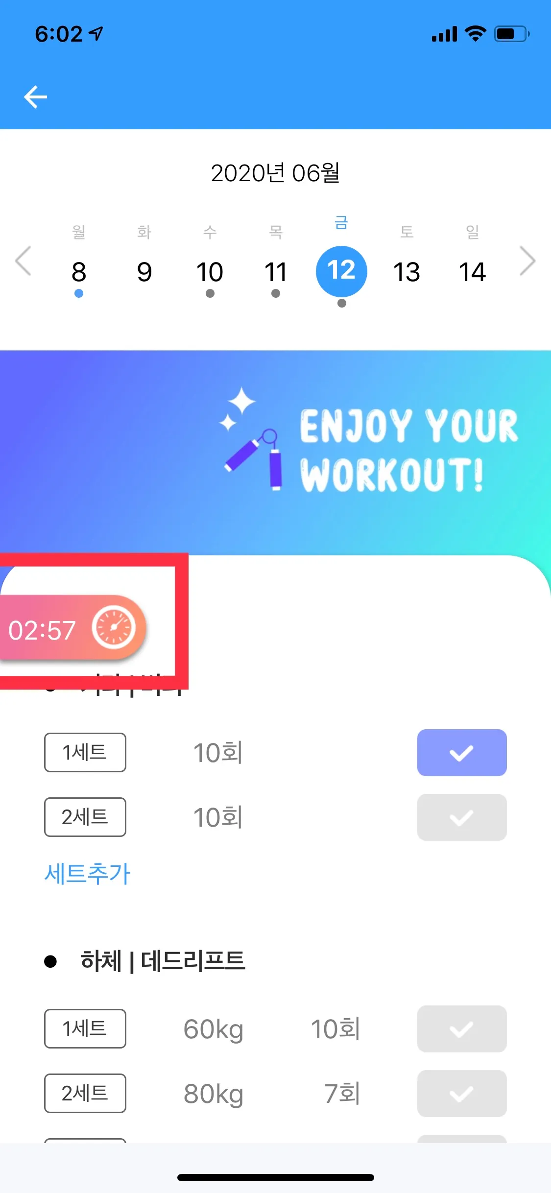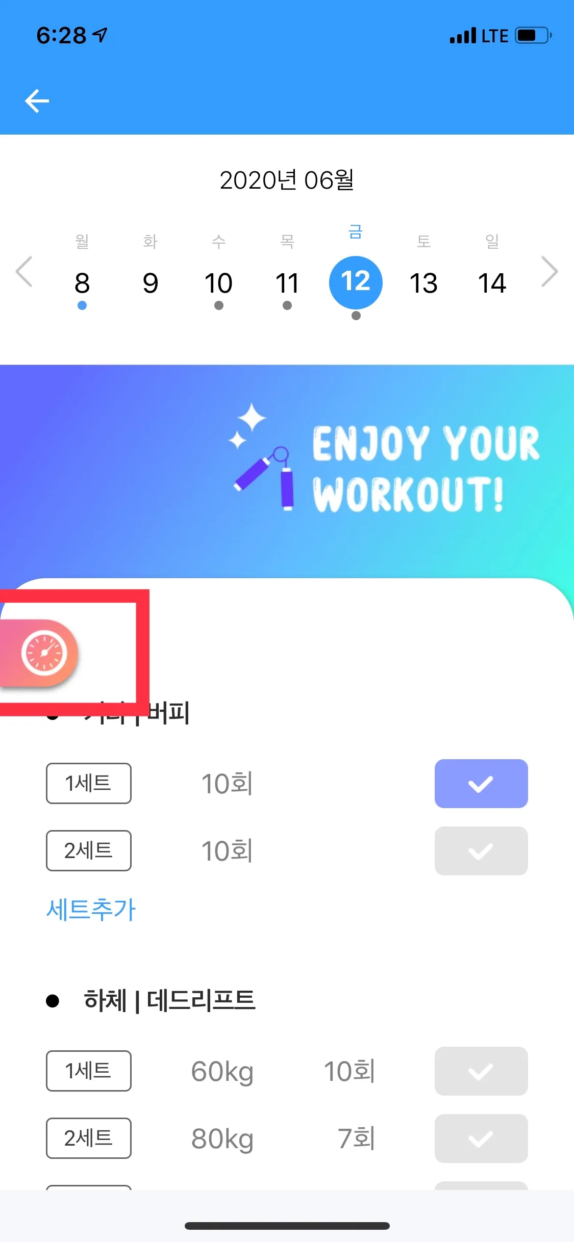 운동 완료는 오늘 혹은 과거 기록만 가능하도록 업데이트 되었습니다.