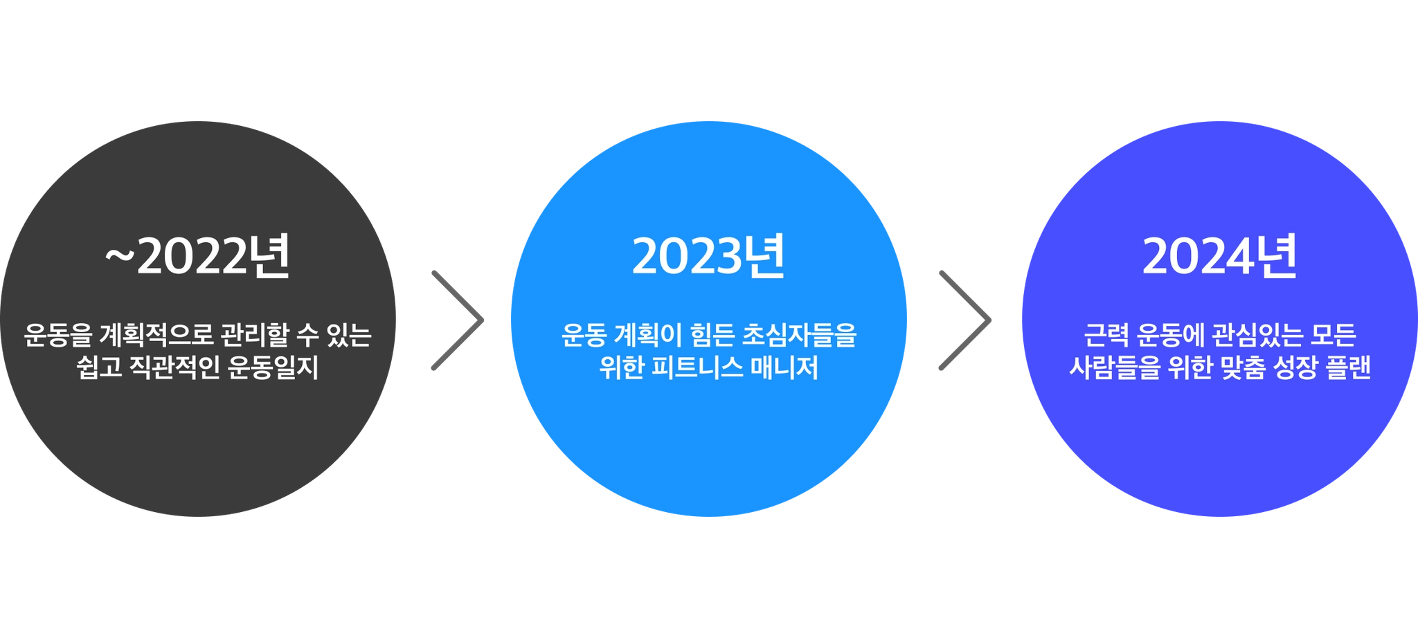 전문가의 운동 방법을 아는 것도 물론 중요하겠지만, 현실적으로는 나와 유사한 일반인의 노하우 혹은 성장 결과가 더 크게 나를 자극하기 마련입니다. 이런 점에 착안하여 나와 같은 목표, 유사한 수행 능력을 가진 유저들과 운동 경험을 공유할 수 있는 형태로 서비스를 확장시키고자 합니다. 다른 유저들과의 연결을 통해 서로 응원하고 긍정의 에너지를 받을 수 있도록해서, 초심자들뿐만 아니라 중,상급자들도 보다 재미있게 근력 운동을 경험할 수 있는 공간으로 거듭나겠습니다.
