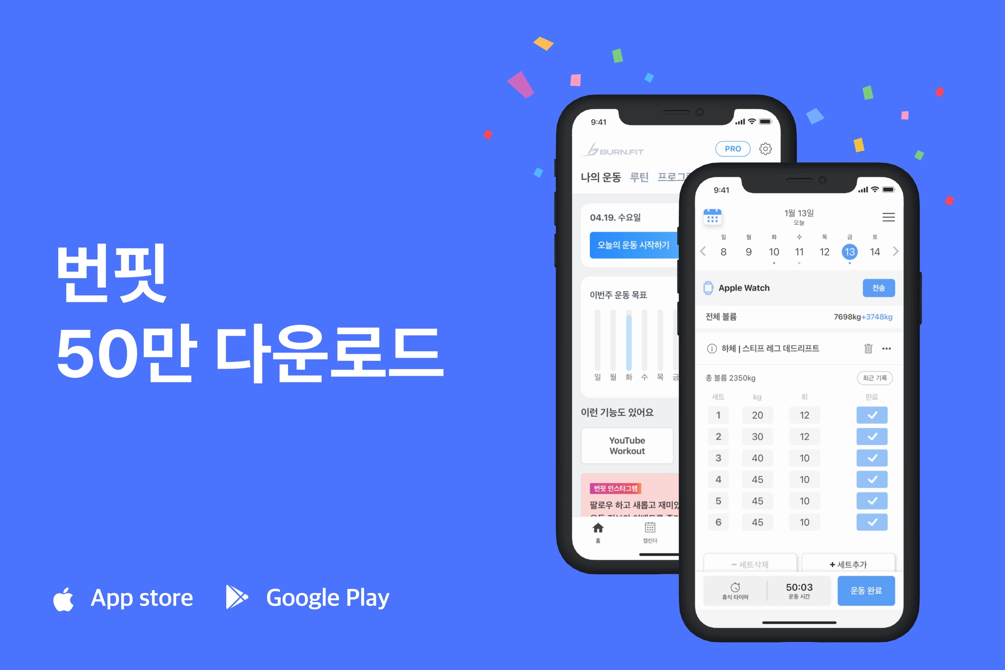 국내 헬스인들의 운동일지 앱 '번핏'이 최근 50만 다운로드를 돌파했다고 발표했다.