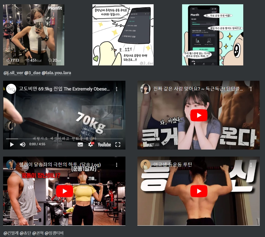 이벤트 종료 후인 현재 시점에도 #머슬핏, #플랜핏 함께 태그하여 인증 업로드