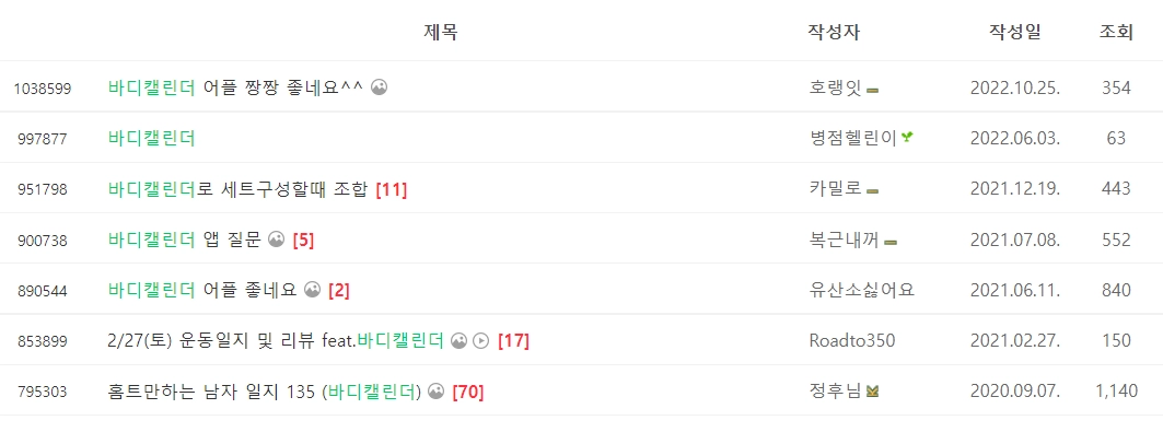 네이버 ‘바디캘린더’검색 시 해당 카페의 게시글 상단 노출