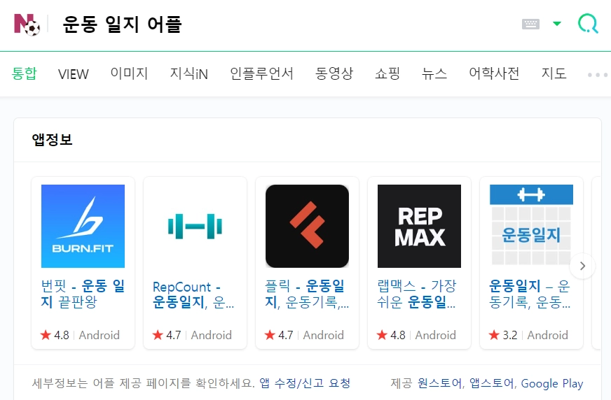 ‘운동 일지 어플’,‘운동 기록 어플’, 검색 시 항상 노출