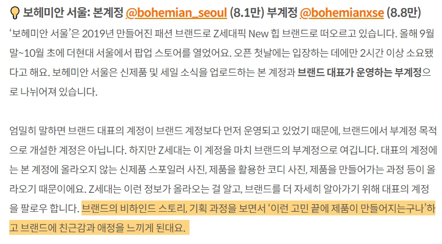 친근감, 애정 생성 : 브랜드의 비하인드 스토리, 기획 과정 노출.
