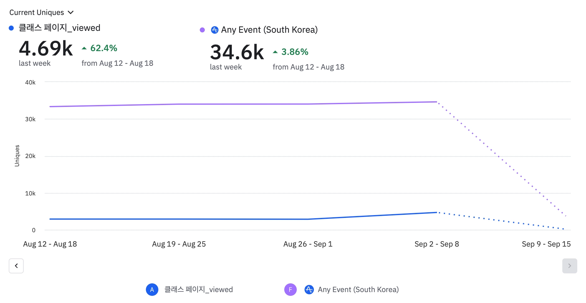 클래스 탭 → PT/그룹 페이지별 viewed로 트래킹 변경이 필요함