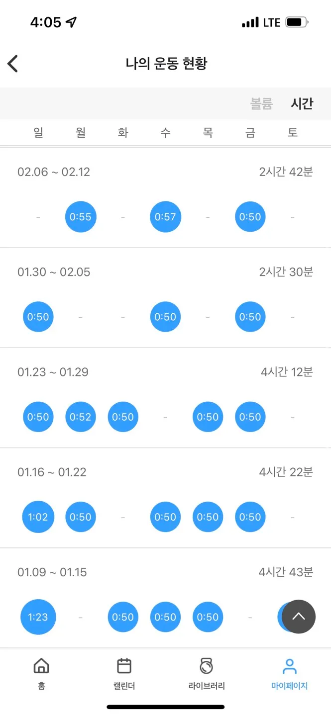 매주 운동을 얼마나 수행하고 있는지 확인해보세요.