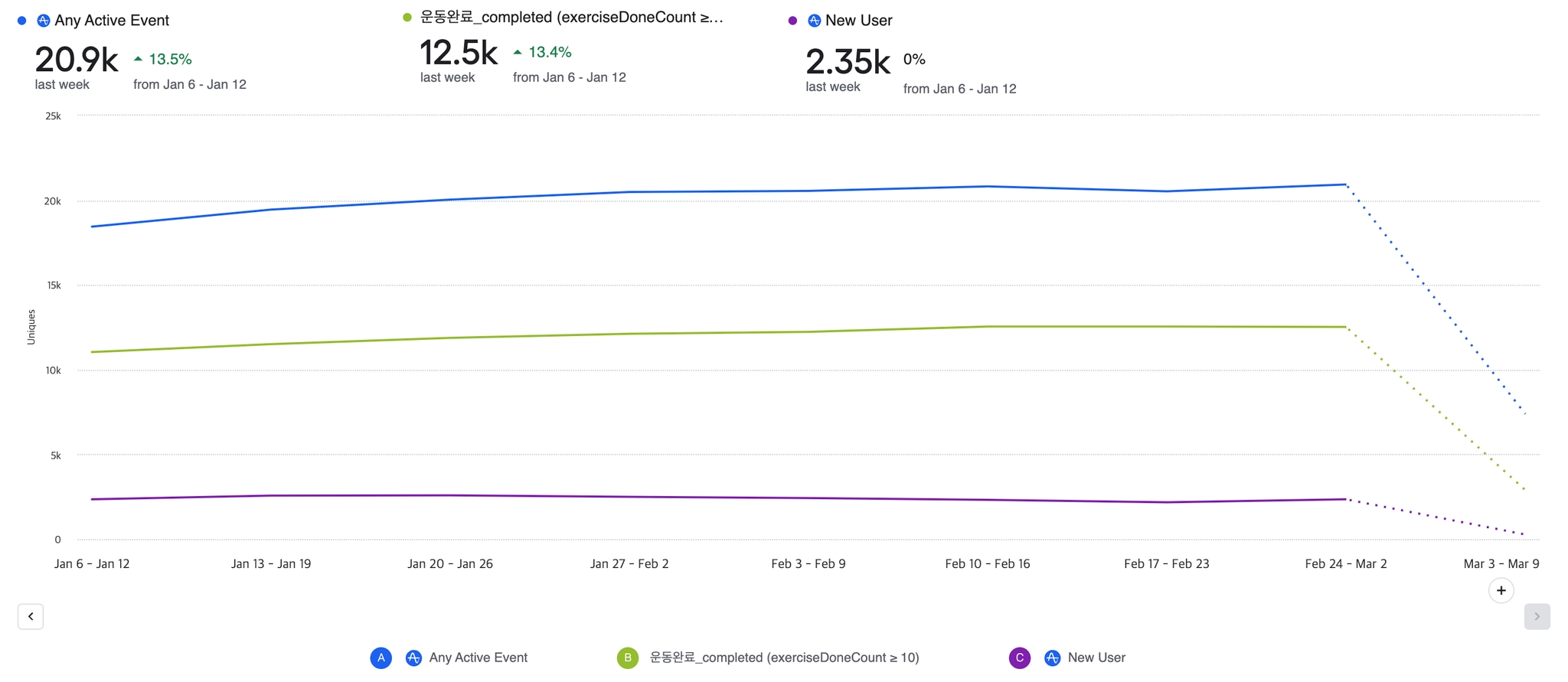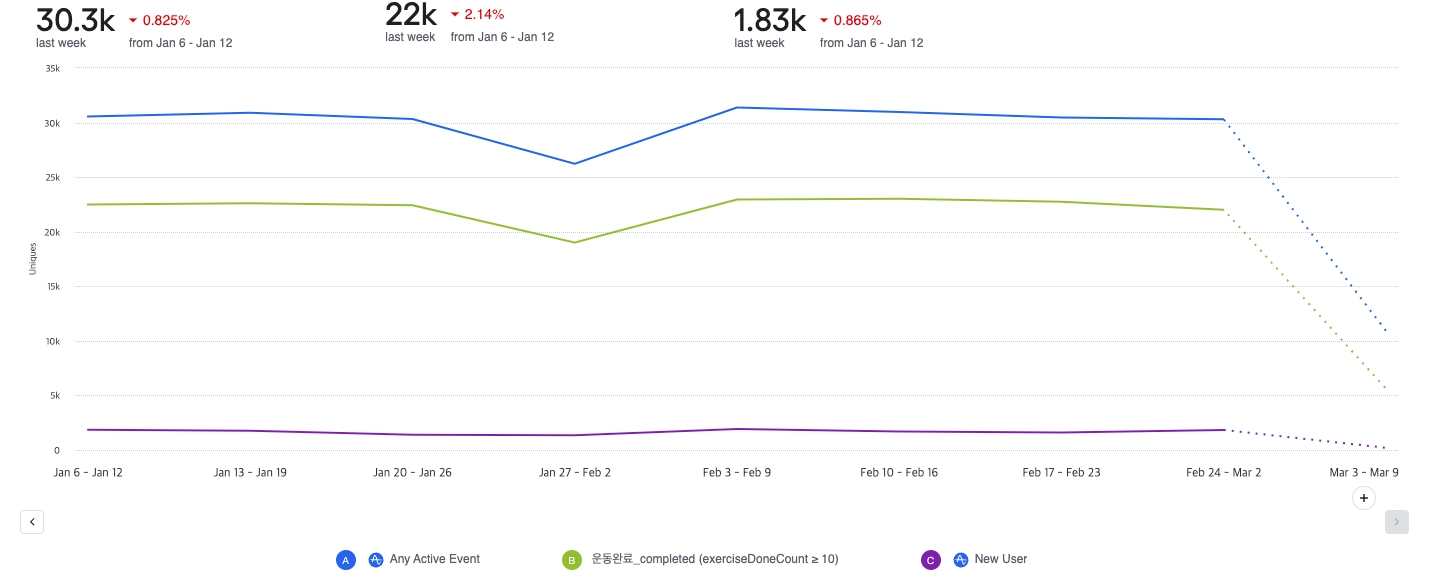 추천 루틴 저장: 기존 대비 34%로 급감 → 루틴 추천 사용성 개선을 위한 UXUI 개선 검토중