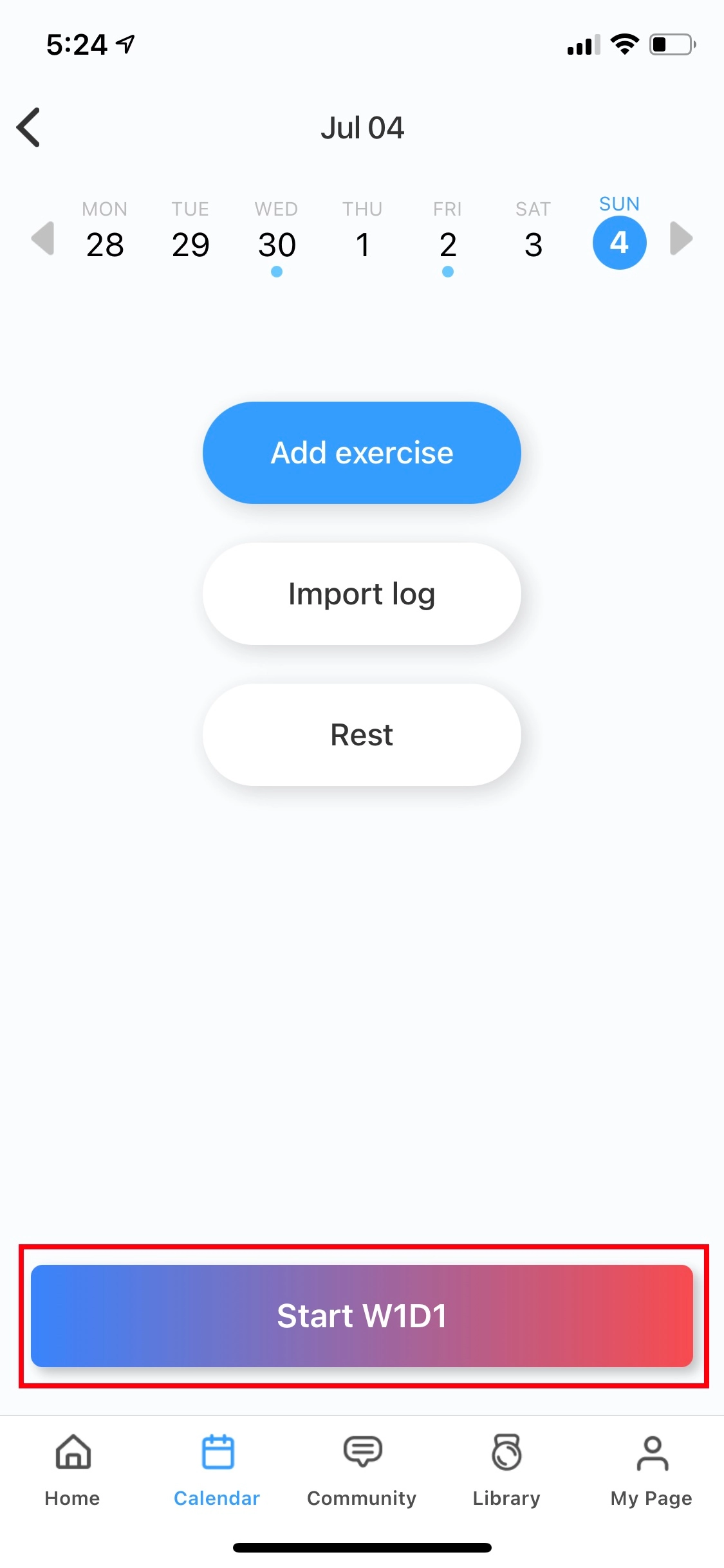 If you feel the program's routine is not enough, you can still add exercise manually on the same day.
