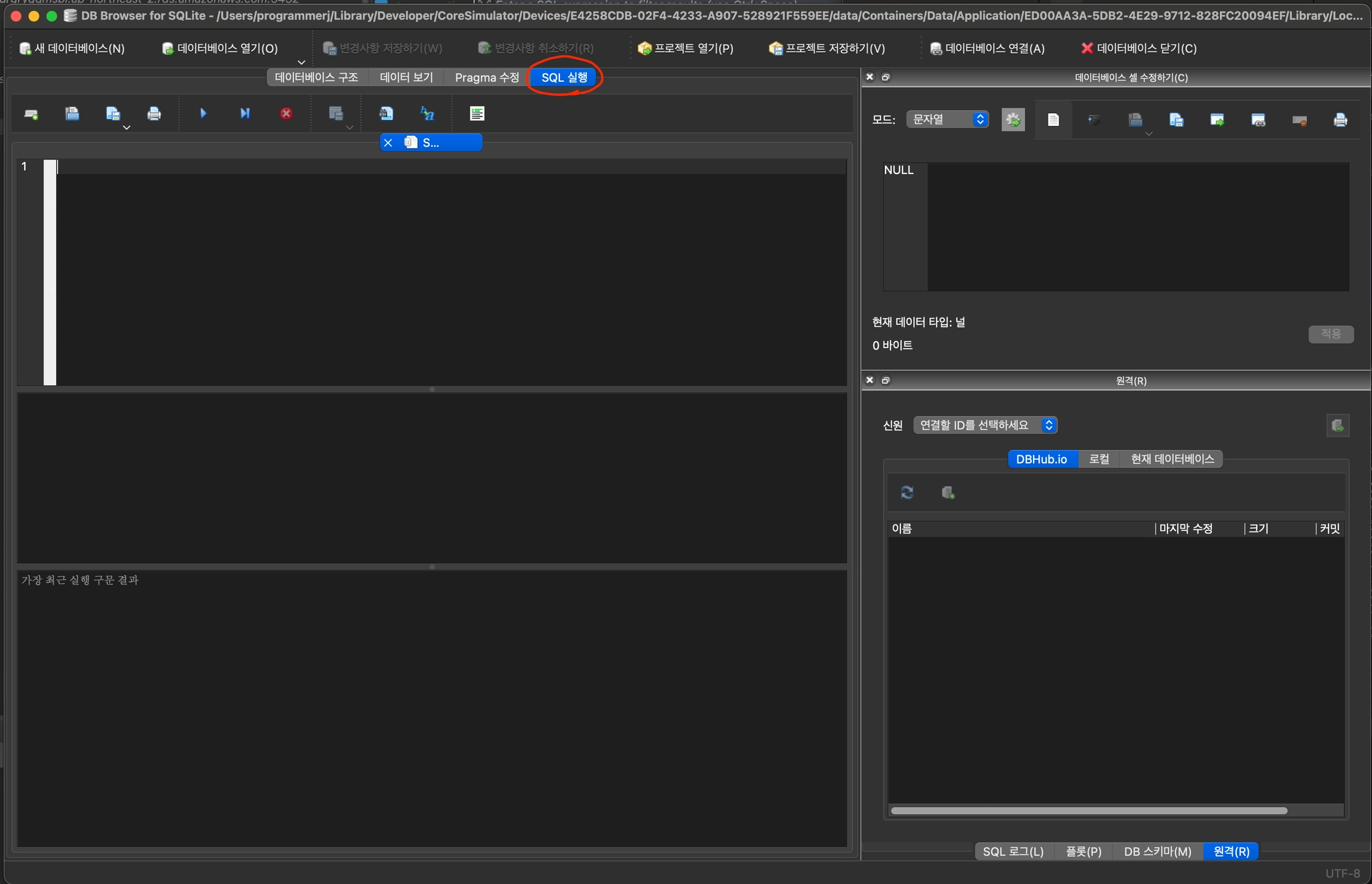 SQL 실행 탭 선택