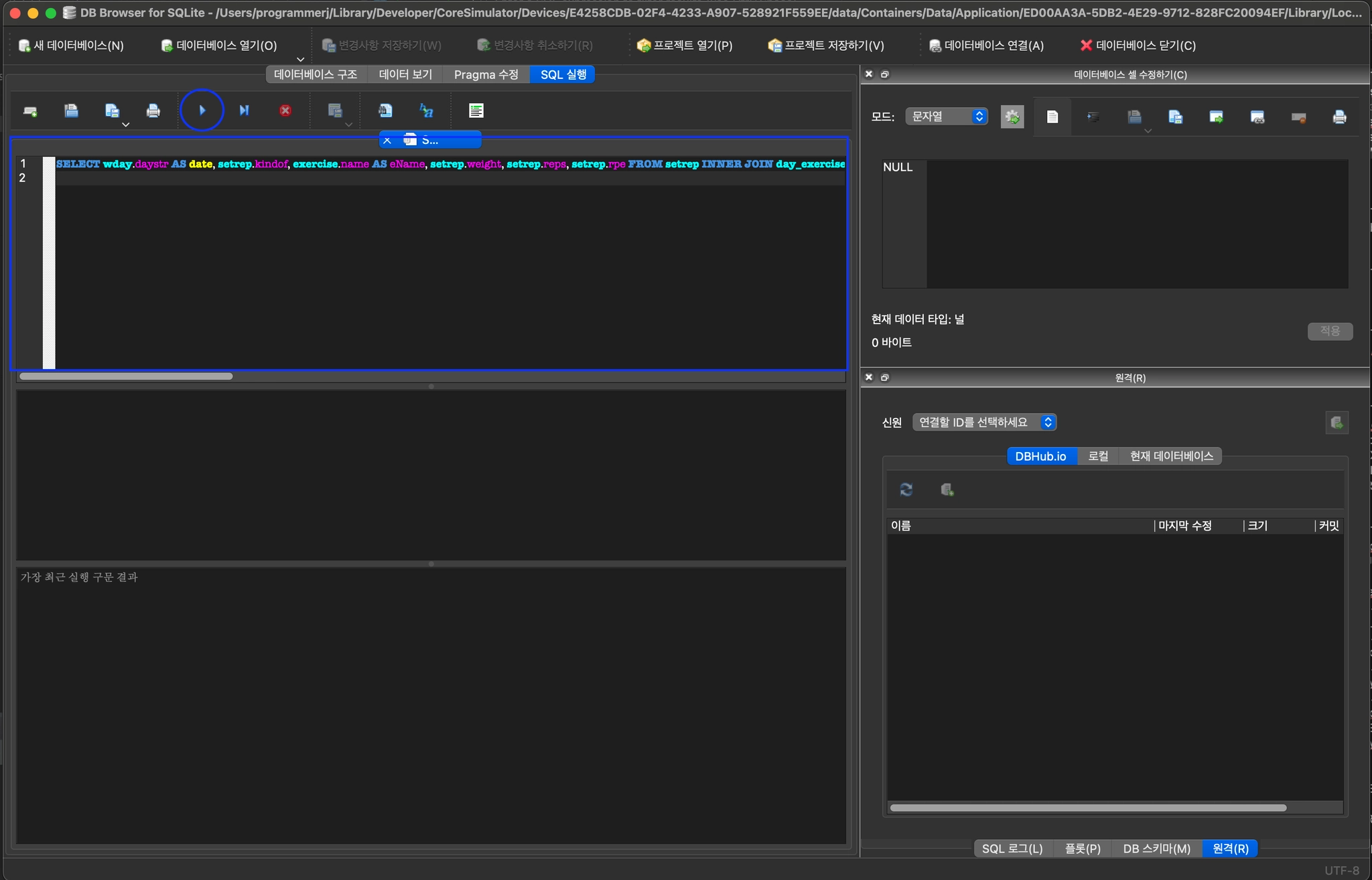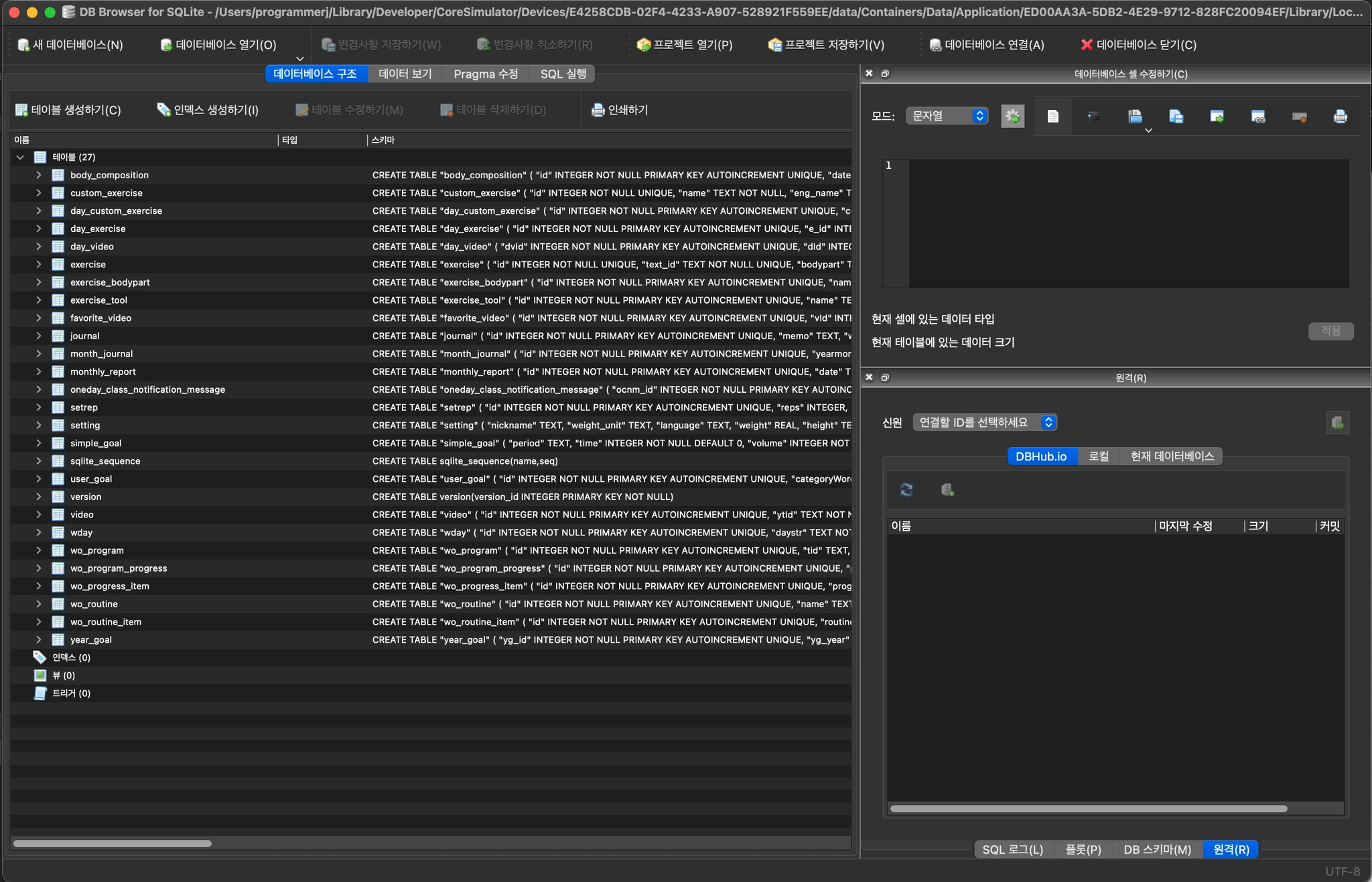 DB Browser for SQLite 프로그램 실행 됨