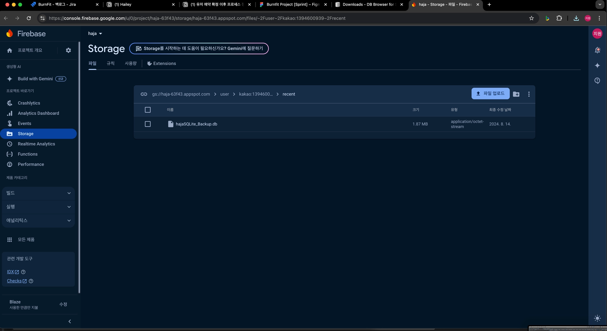 체크 박스 선택 해서 hajaSQLite_Backup.db 파일 다운로드