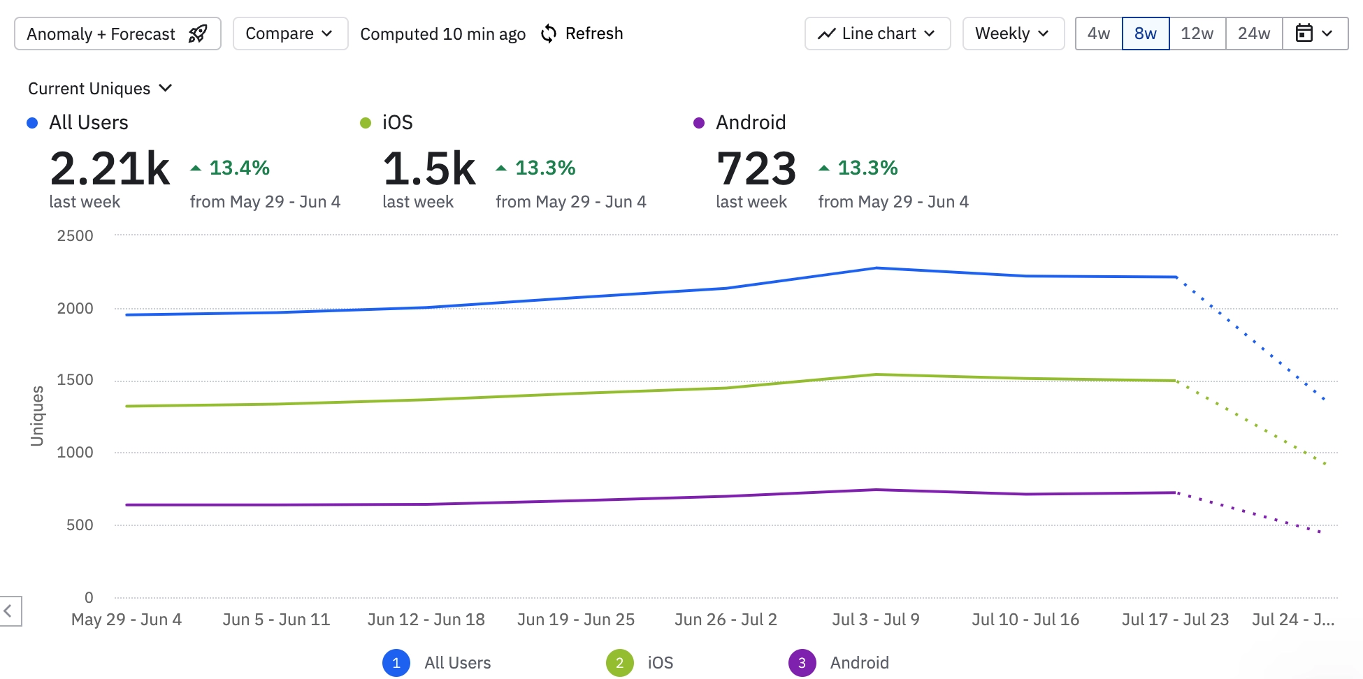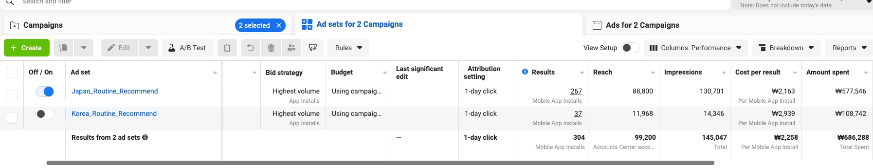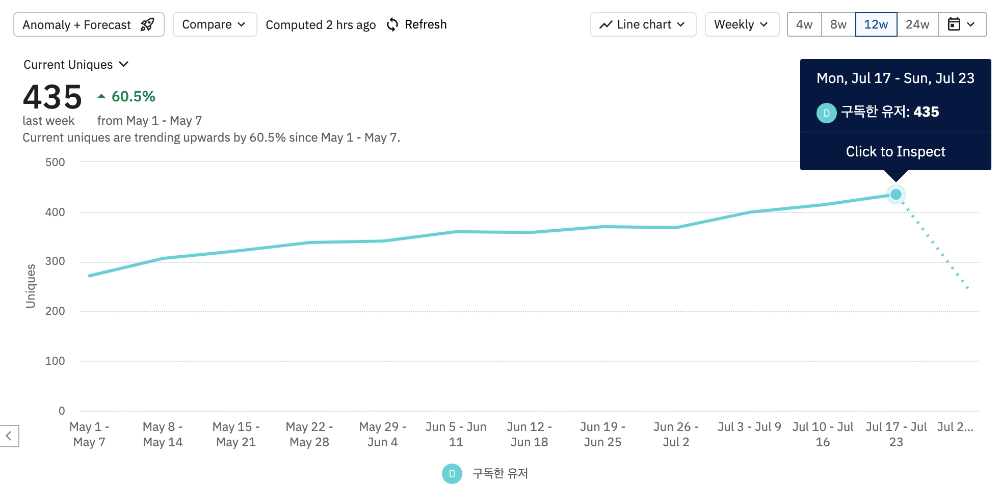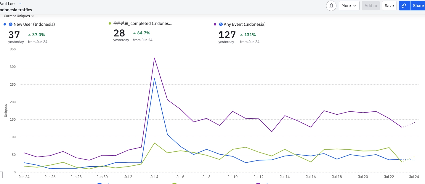 루틴 추천 시작율(unique) 45%: 신규 유저들 중 45%가 루틴 추천을 시작했다.