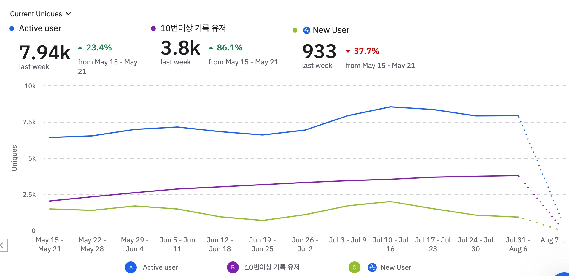 7월 4주차 | 2494 | 21574 | ₩120000 | 1534 | 4062(+182) | ₩800,000 |