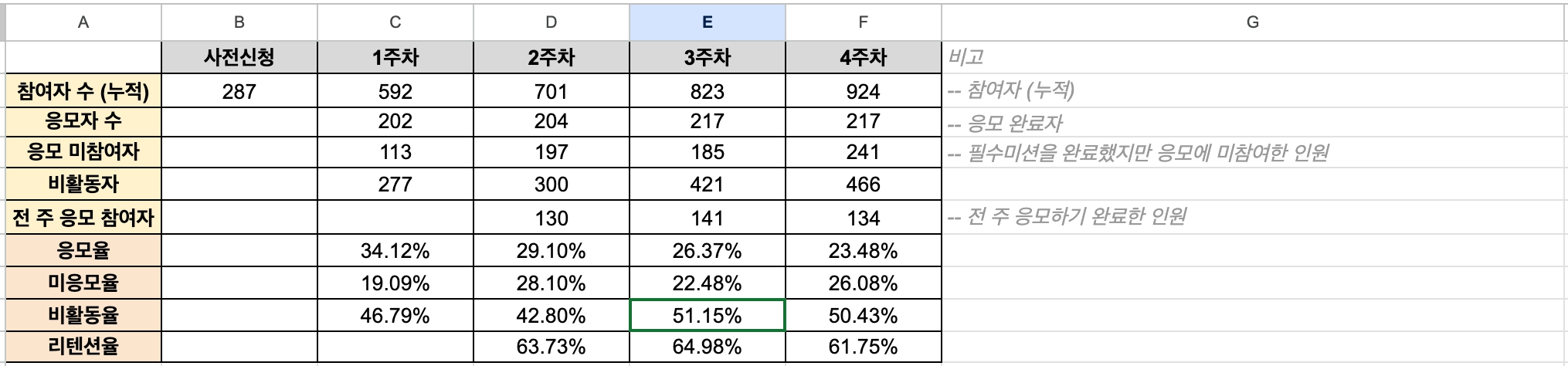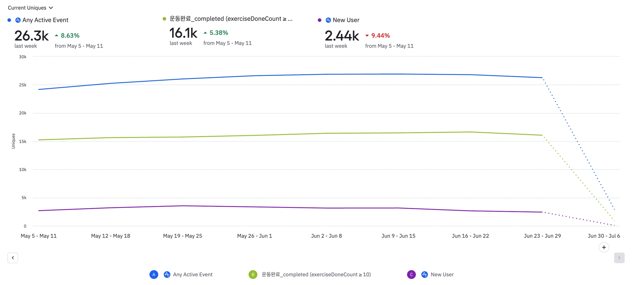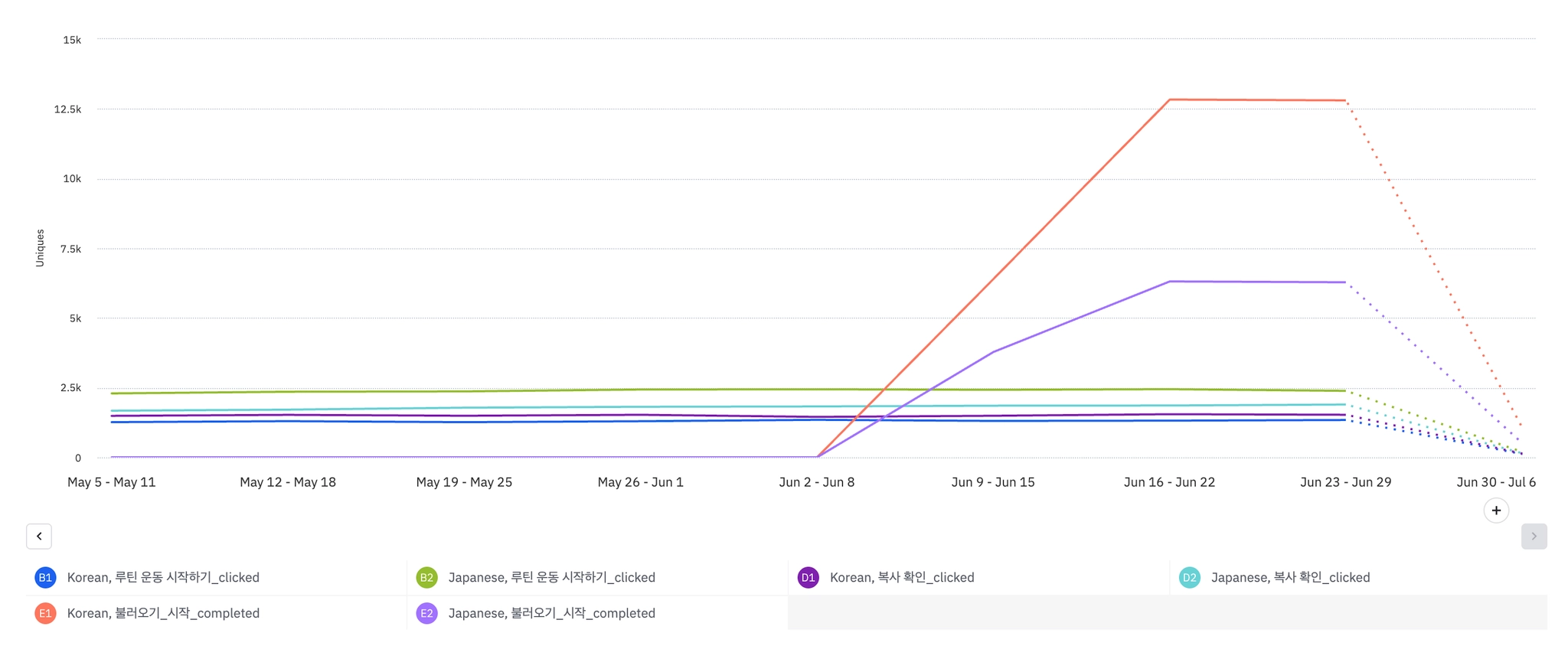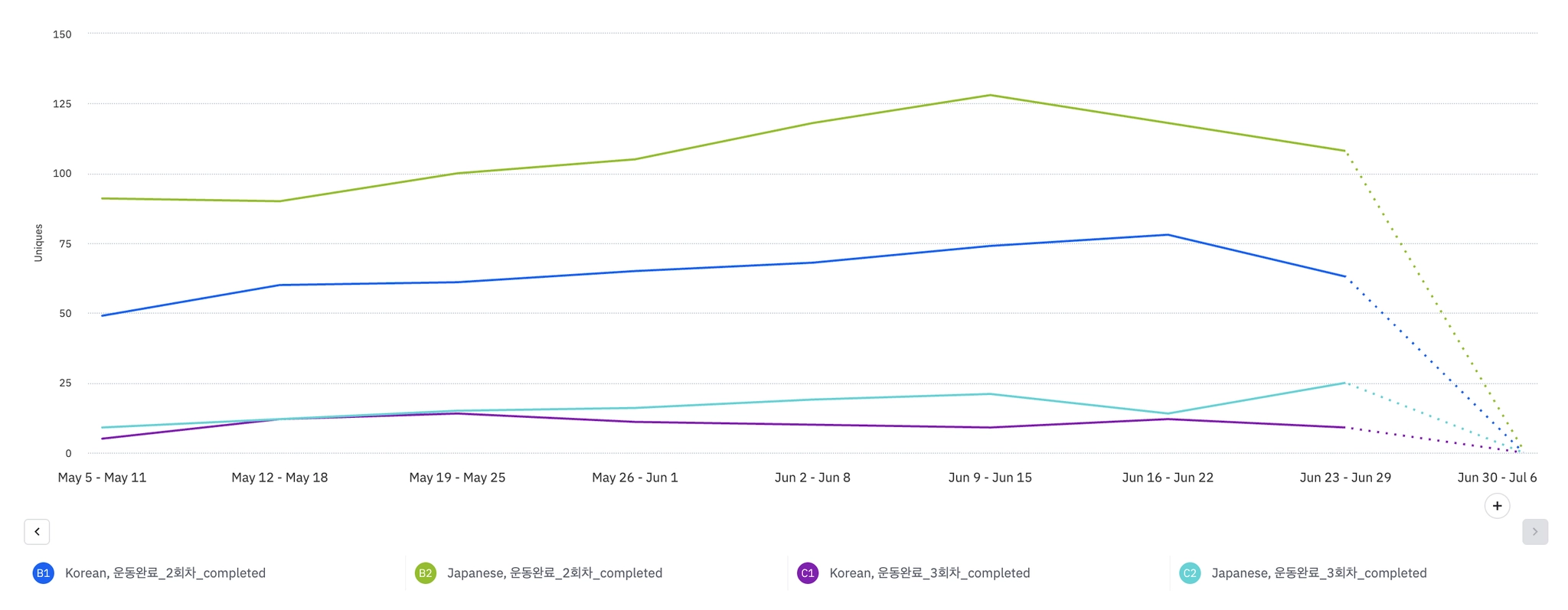 <운동완료 이후 위클리 페이지 전환 성공률>