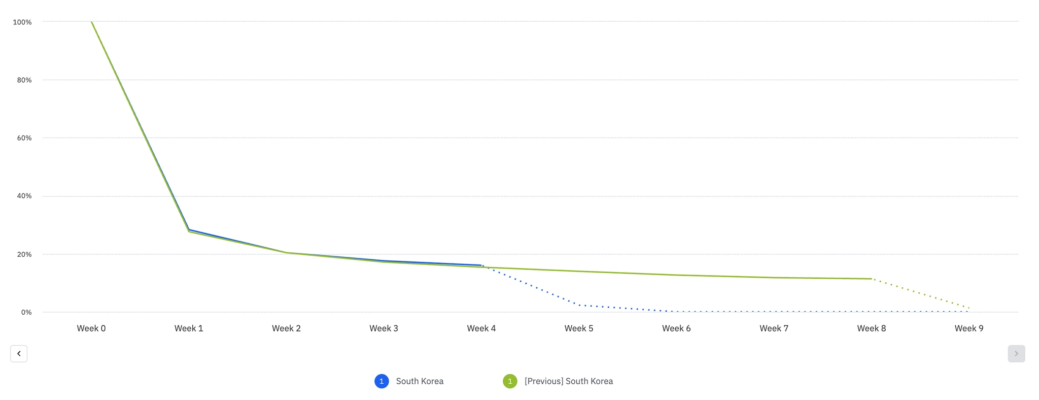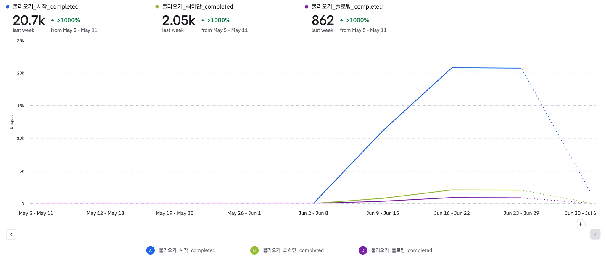 온보딩 시작 성공 퍼널 변화 | 74.5 → 81.7 → 82.9 |
