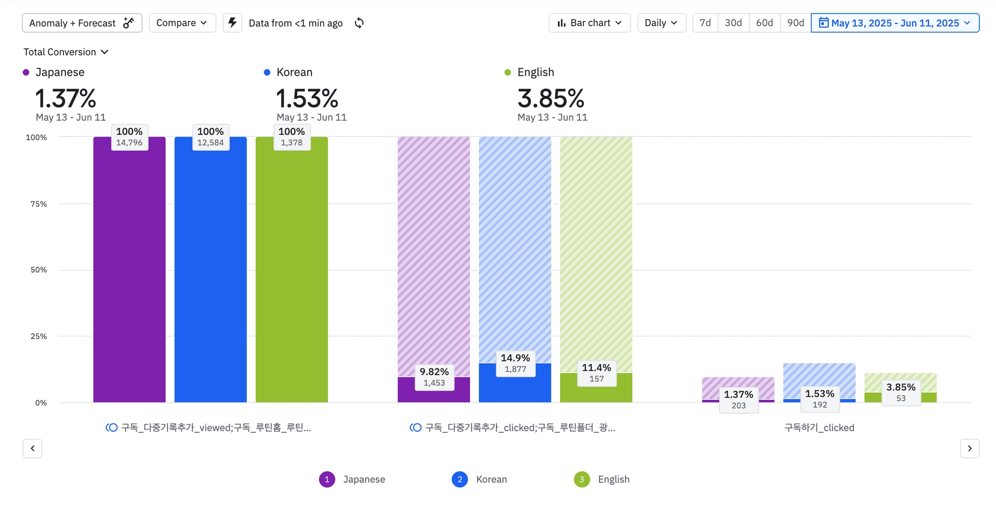 이후에도 전환율 개선이 되지 않는다면 가설 재검토 후 A/B 테스트 진행할 예정