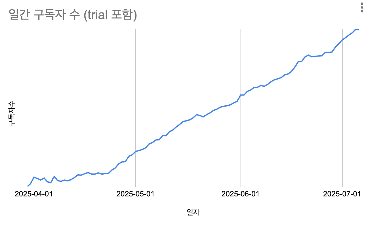 [DEAN] 주간 신규 설치 및 구독 현황 등 (구독 집계 이후인 25.3.30 이후 집계)