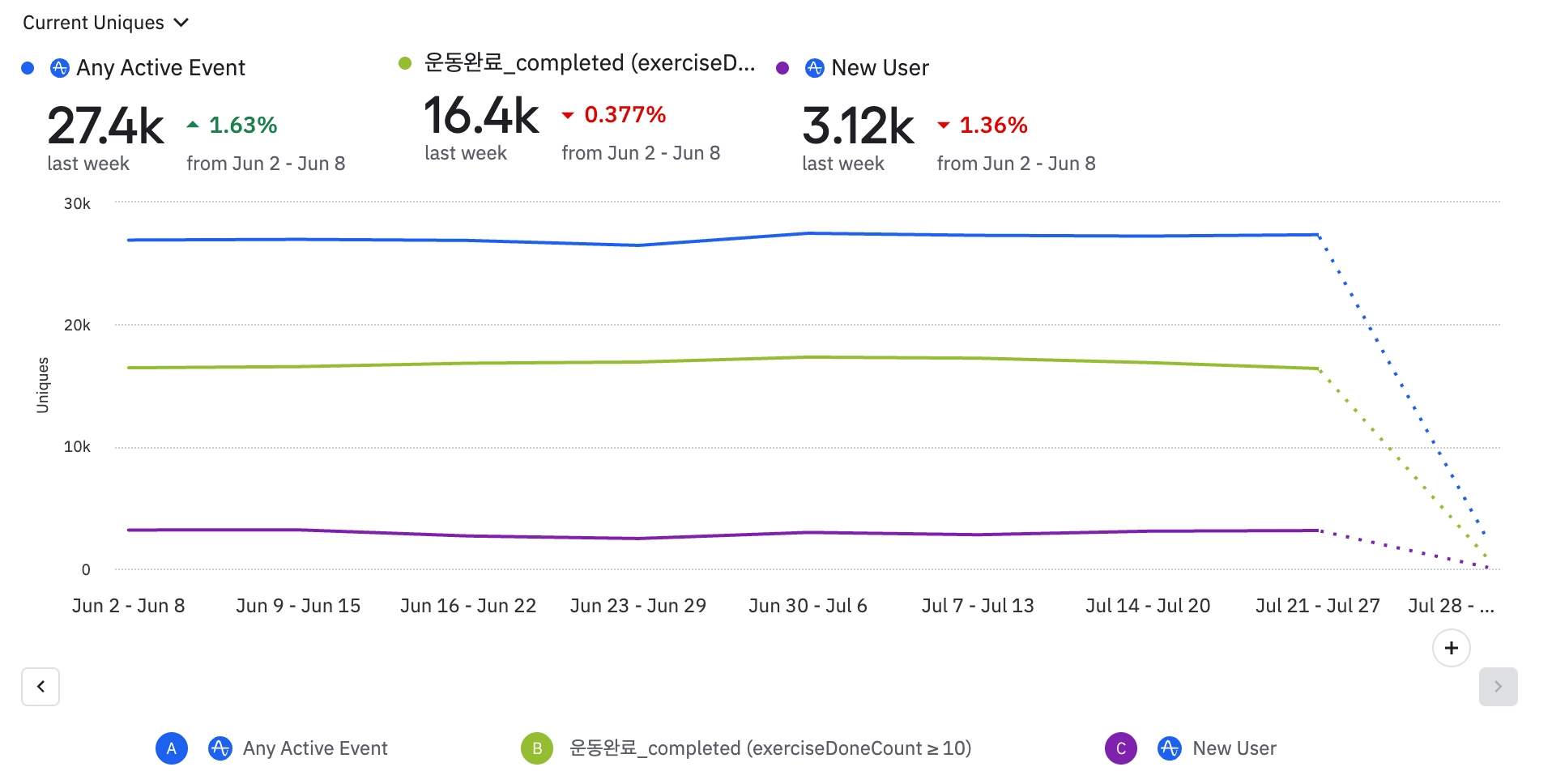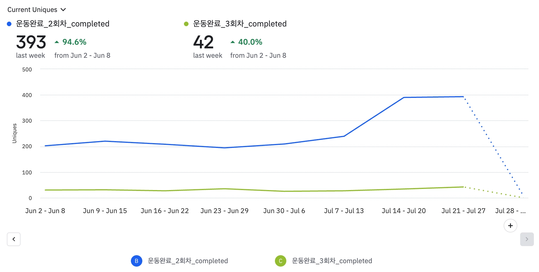 [위클리] 운동 시작 후 다음날 운동 완료 시 운동 시간 50분 표시 이슈