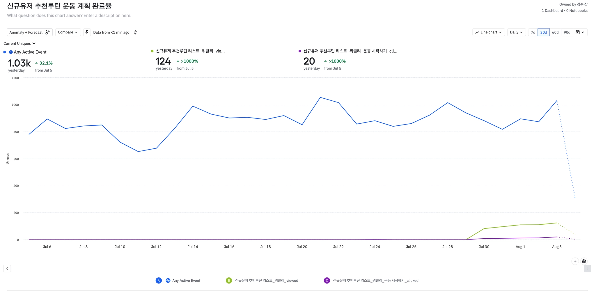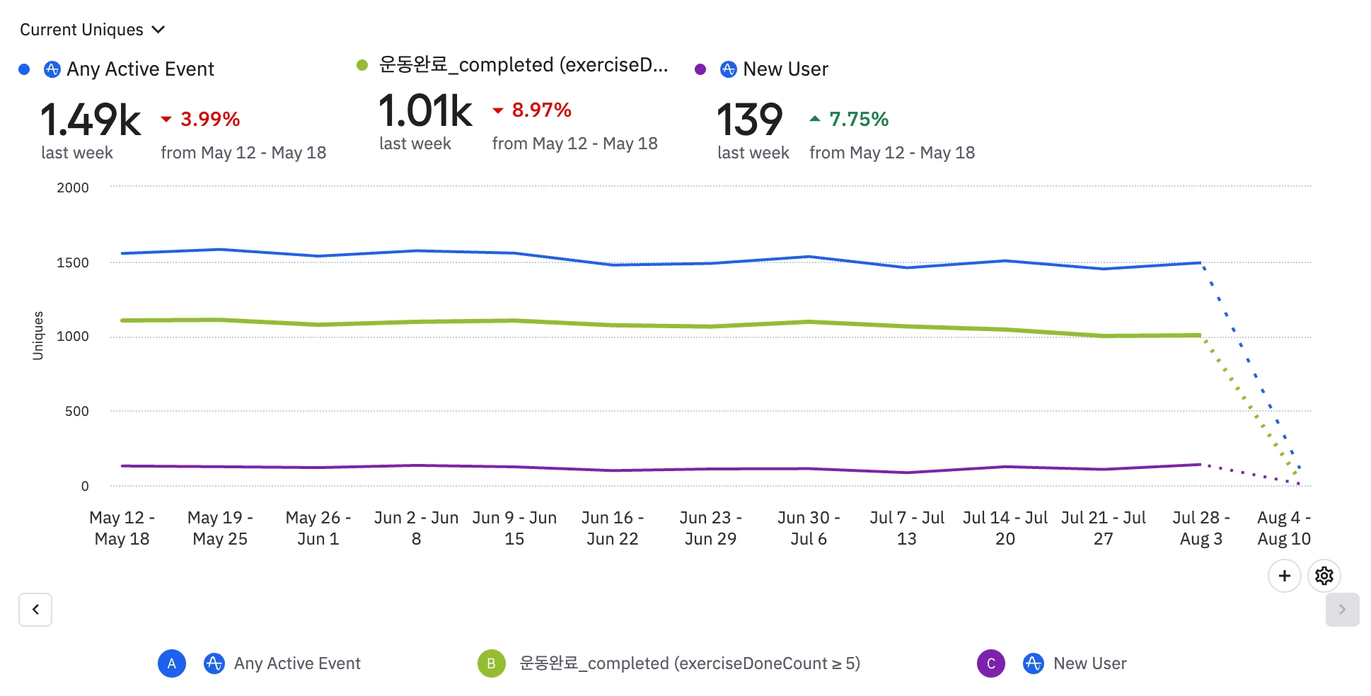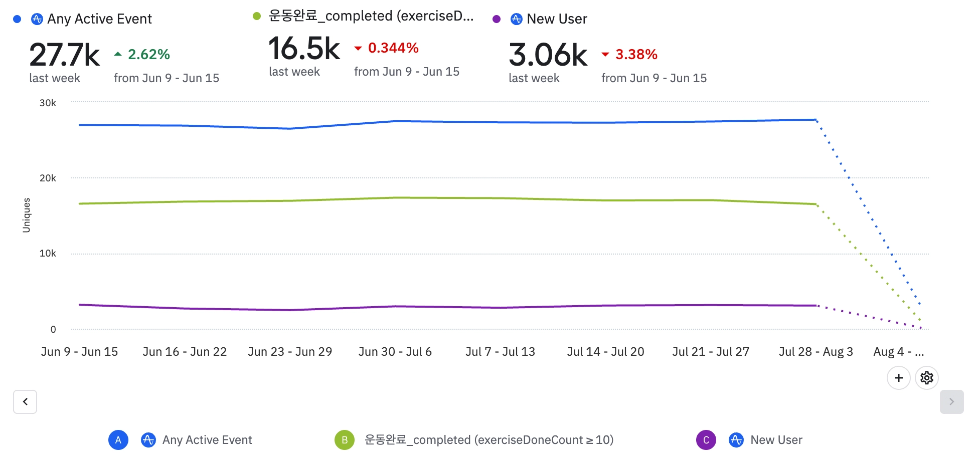 1주일에 3번이상 운동완료하는 유저(NSM)