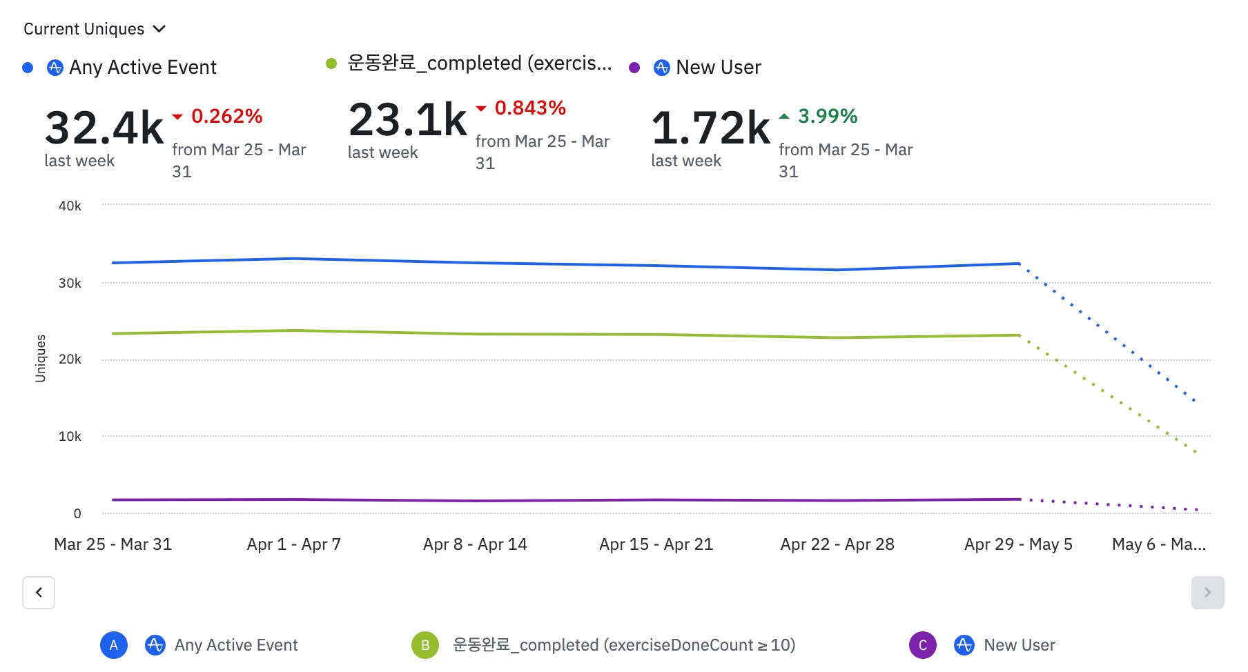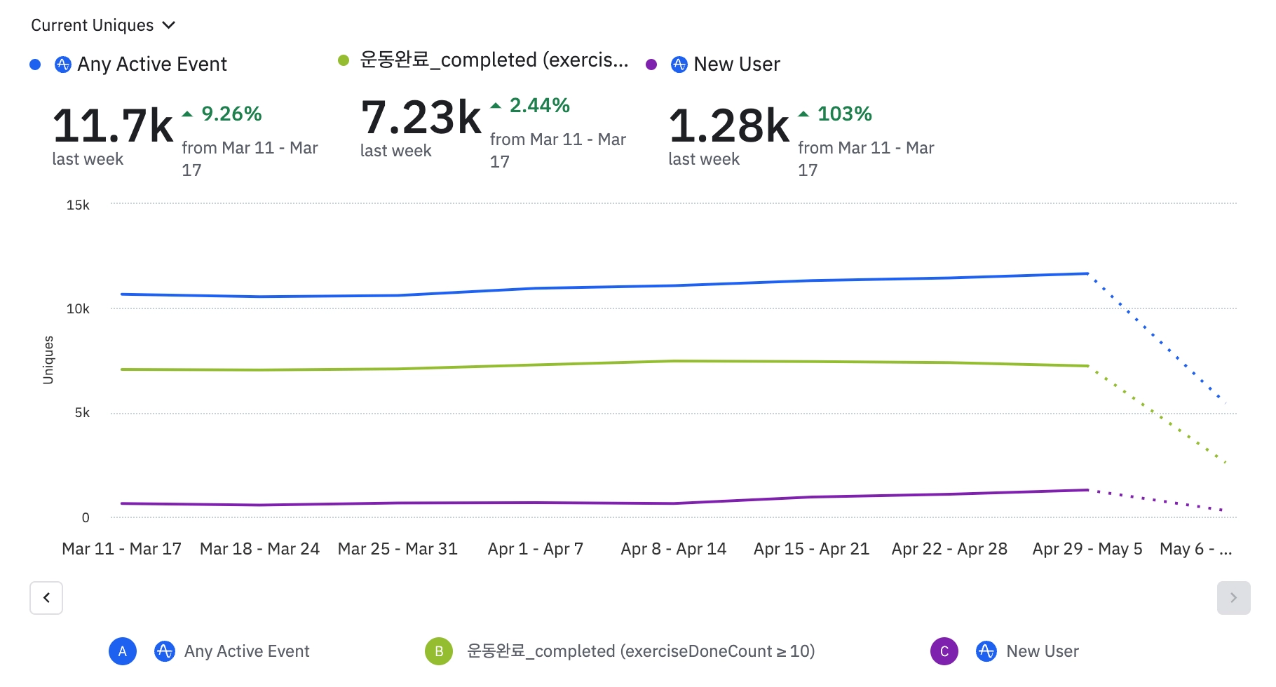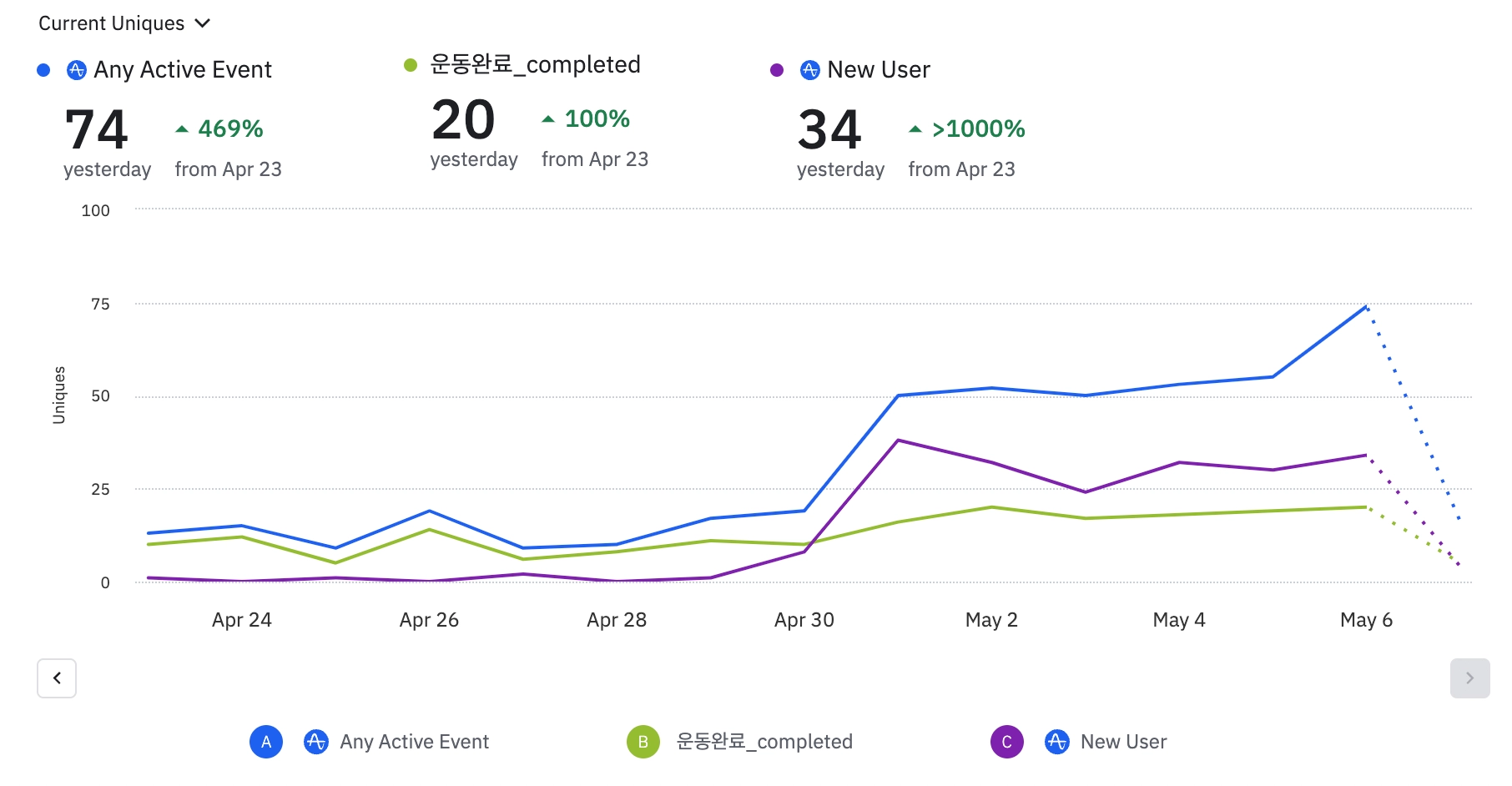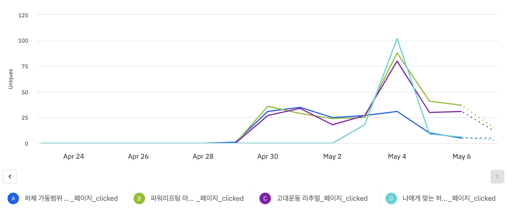아직 8일차 테스트 중으로, 최소 3주 테스트 필요. 아직 드라마틱한 차이는 없음. 기존 전환율 대비 3~4% 상승만 보임.