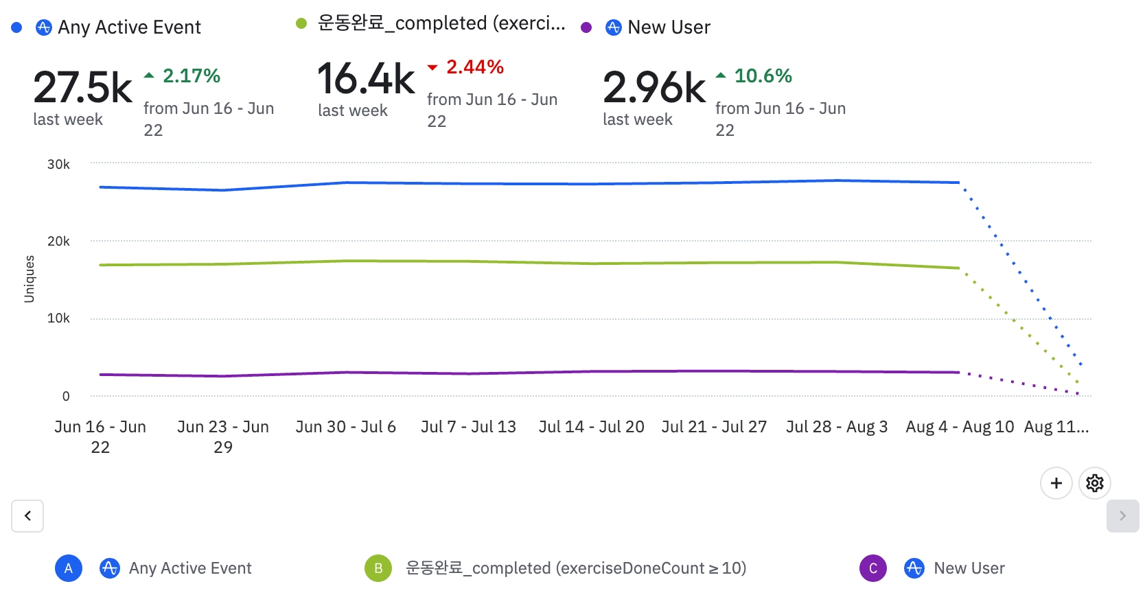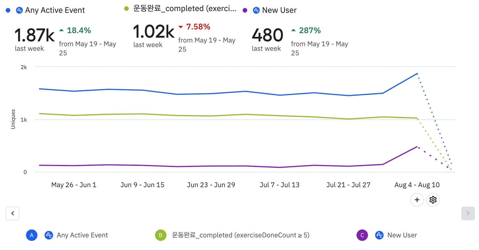 신규 유저의 운동 계획에 큰 영향을 주지는 못했다.