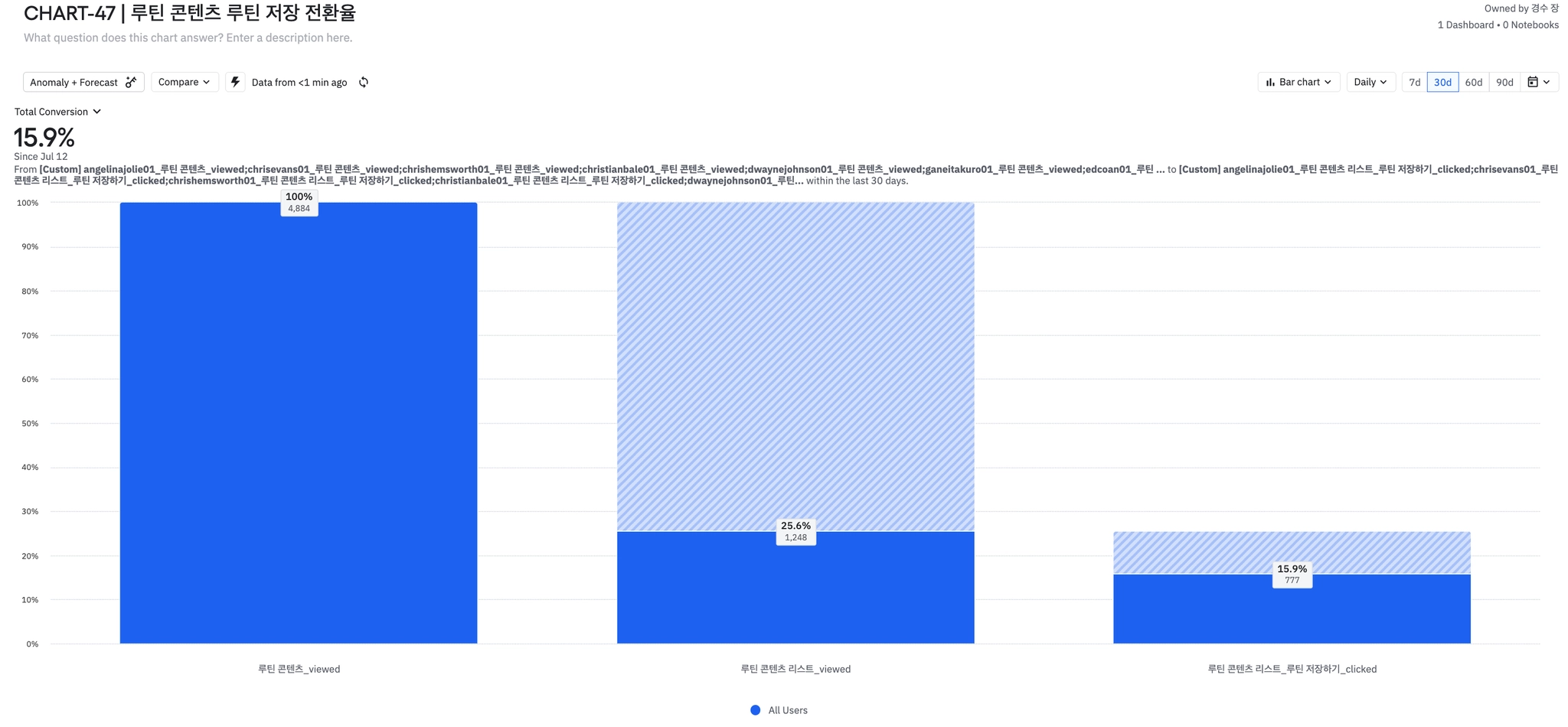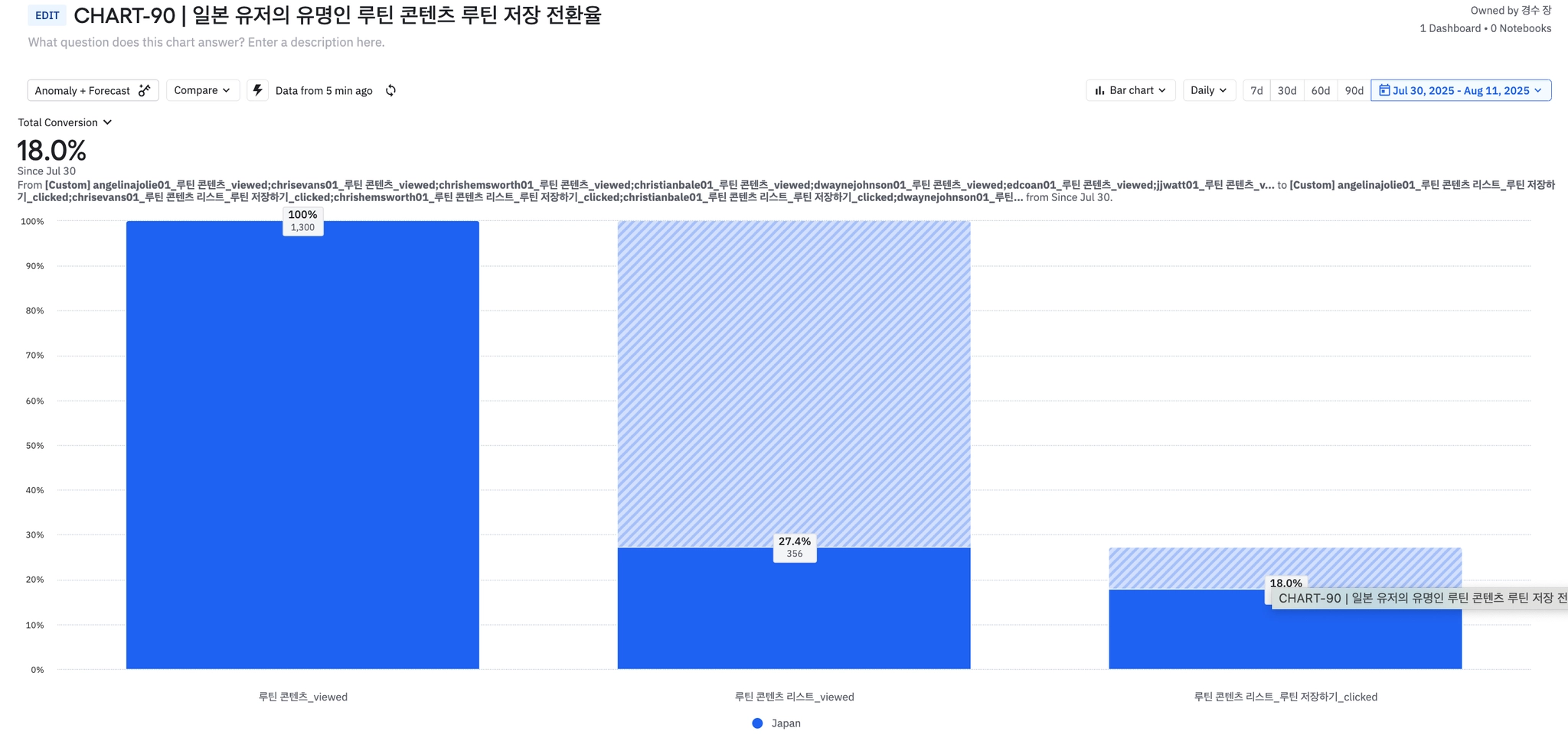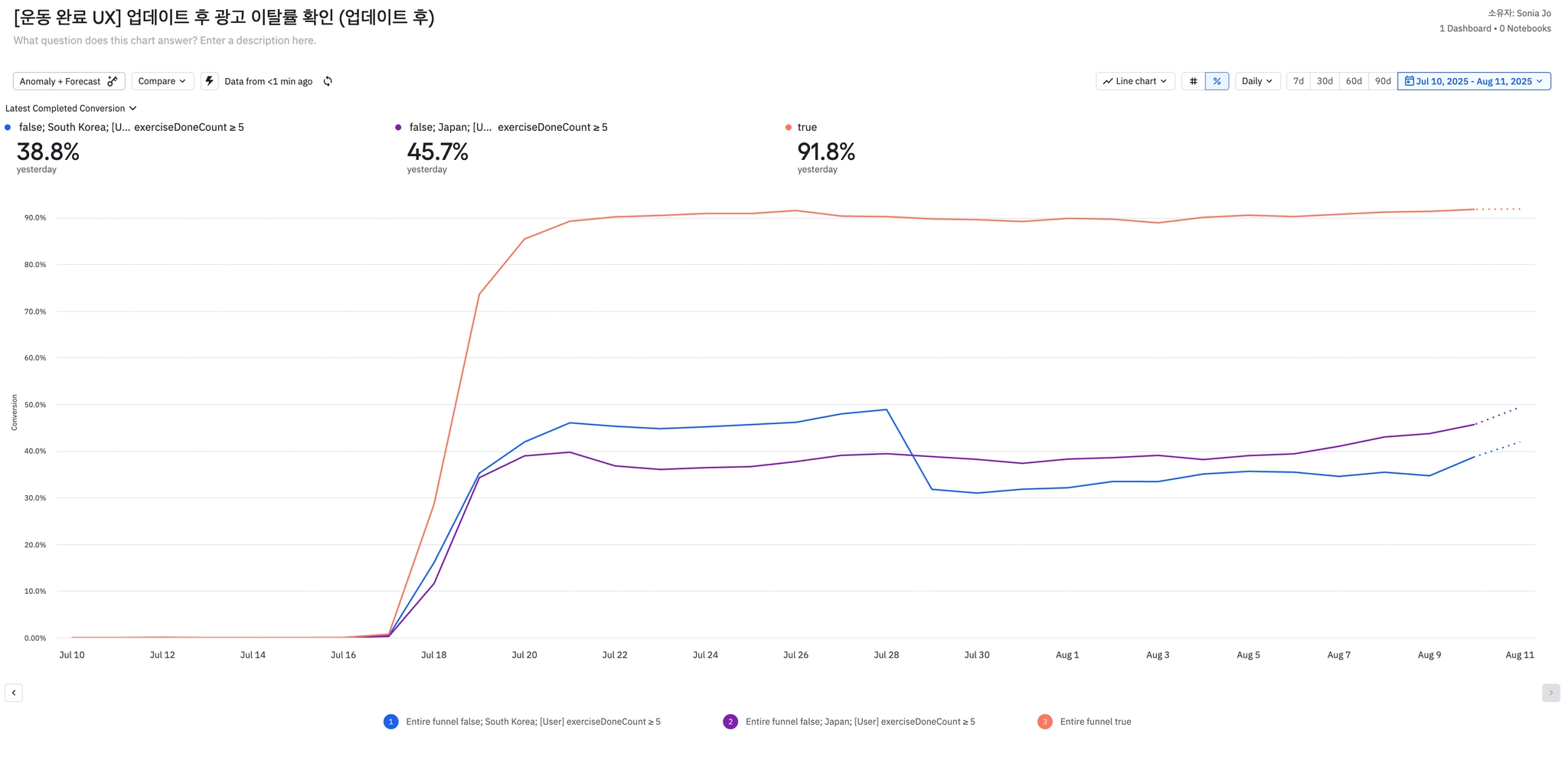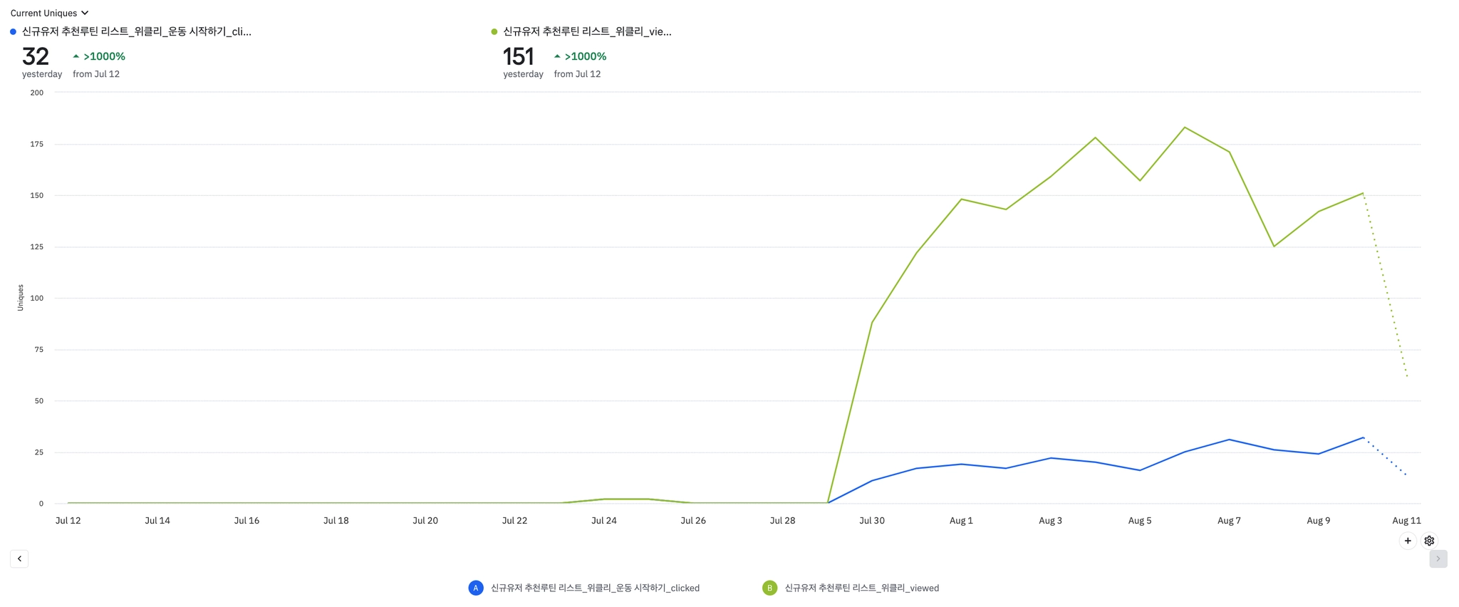 7월 30일부터 루틴 콘텐츠 저장 완료율 비교