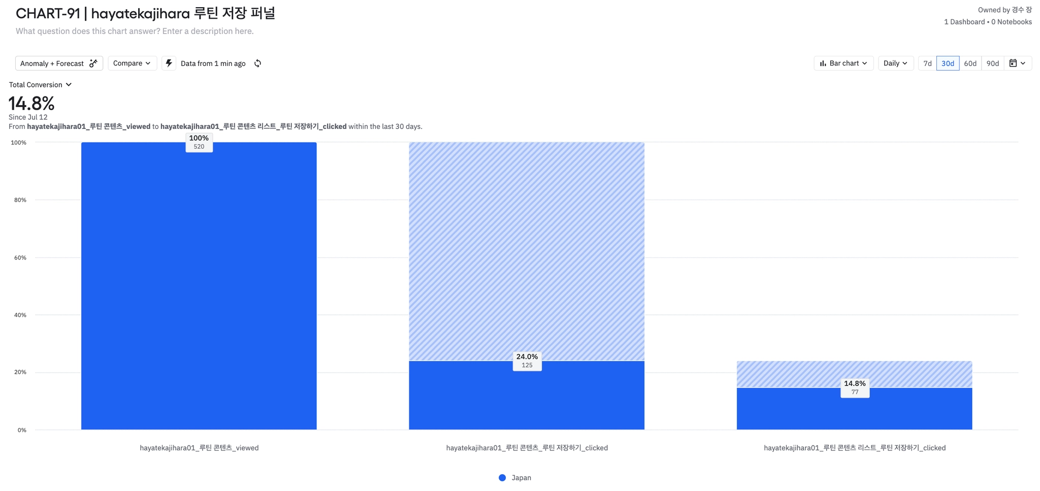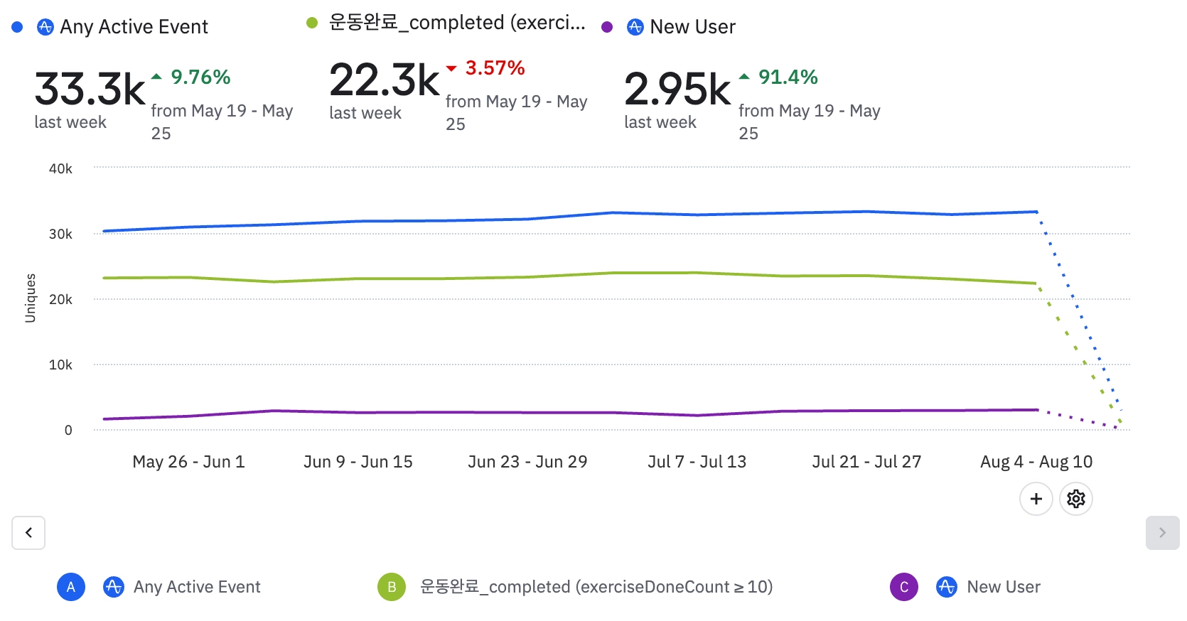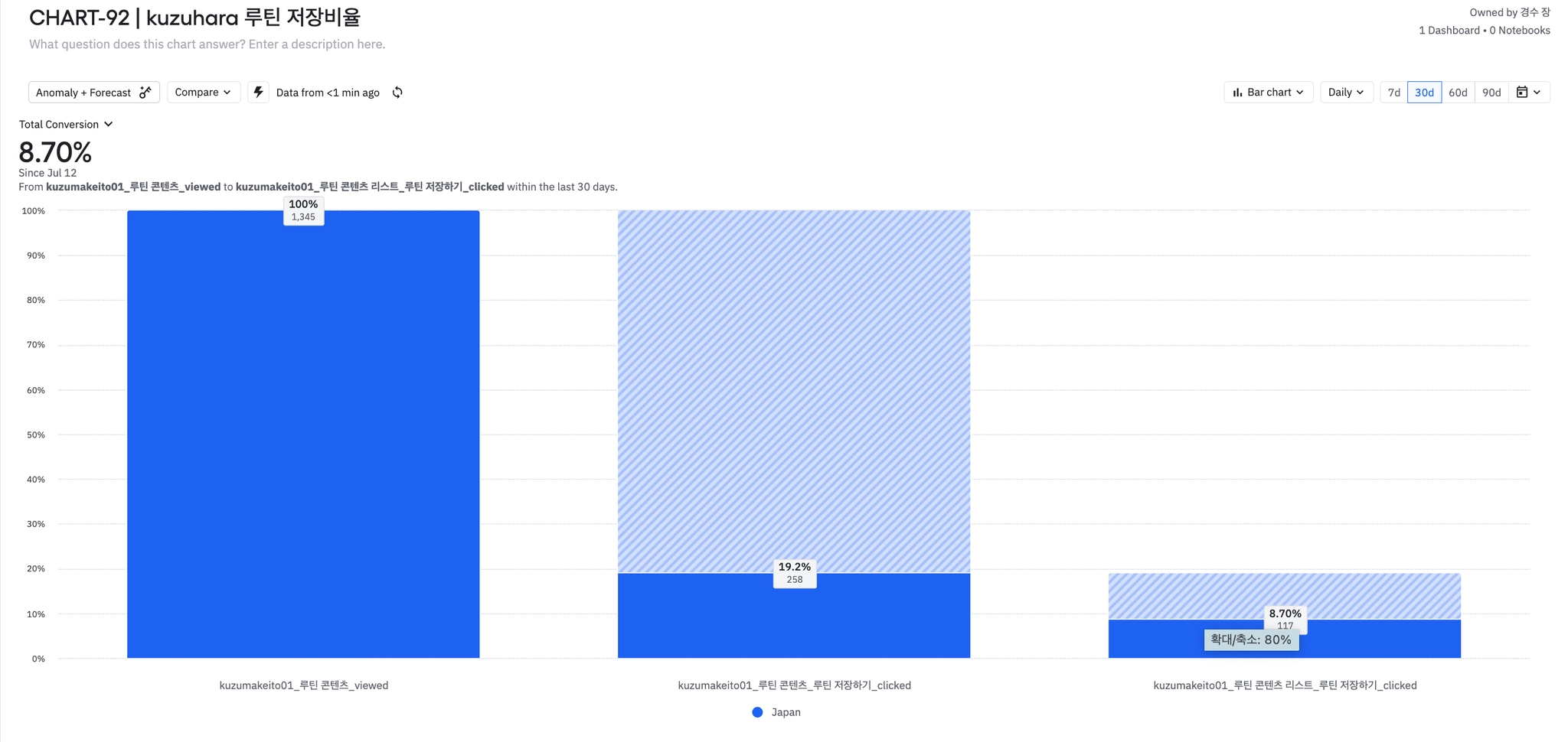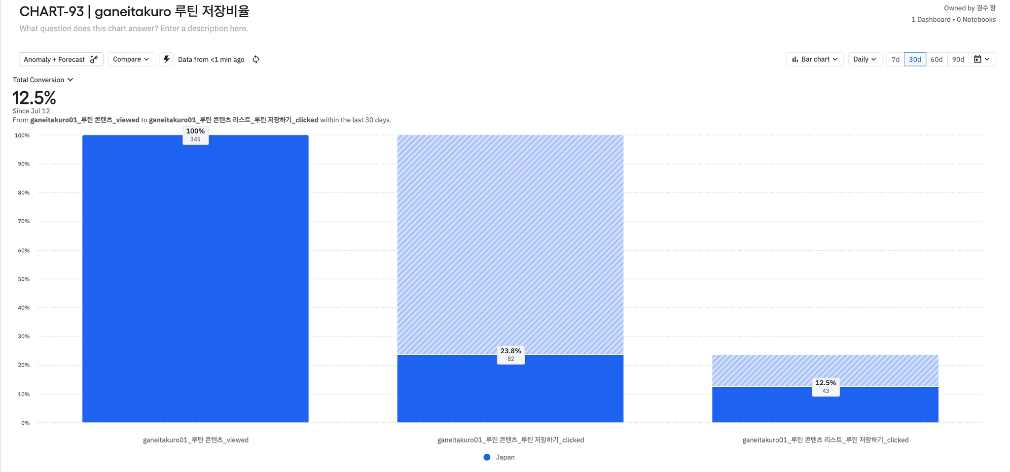 7월 30일부터 루틴 콘텐츠 저장 완료율 비교