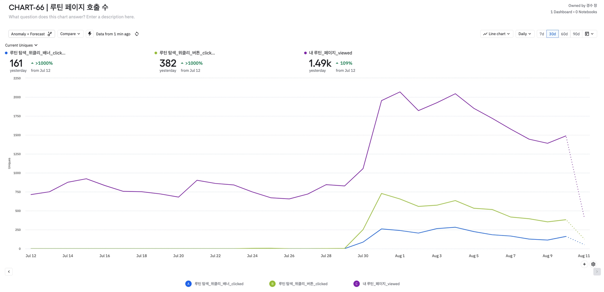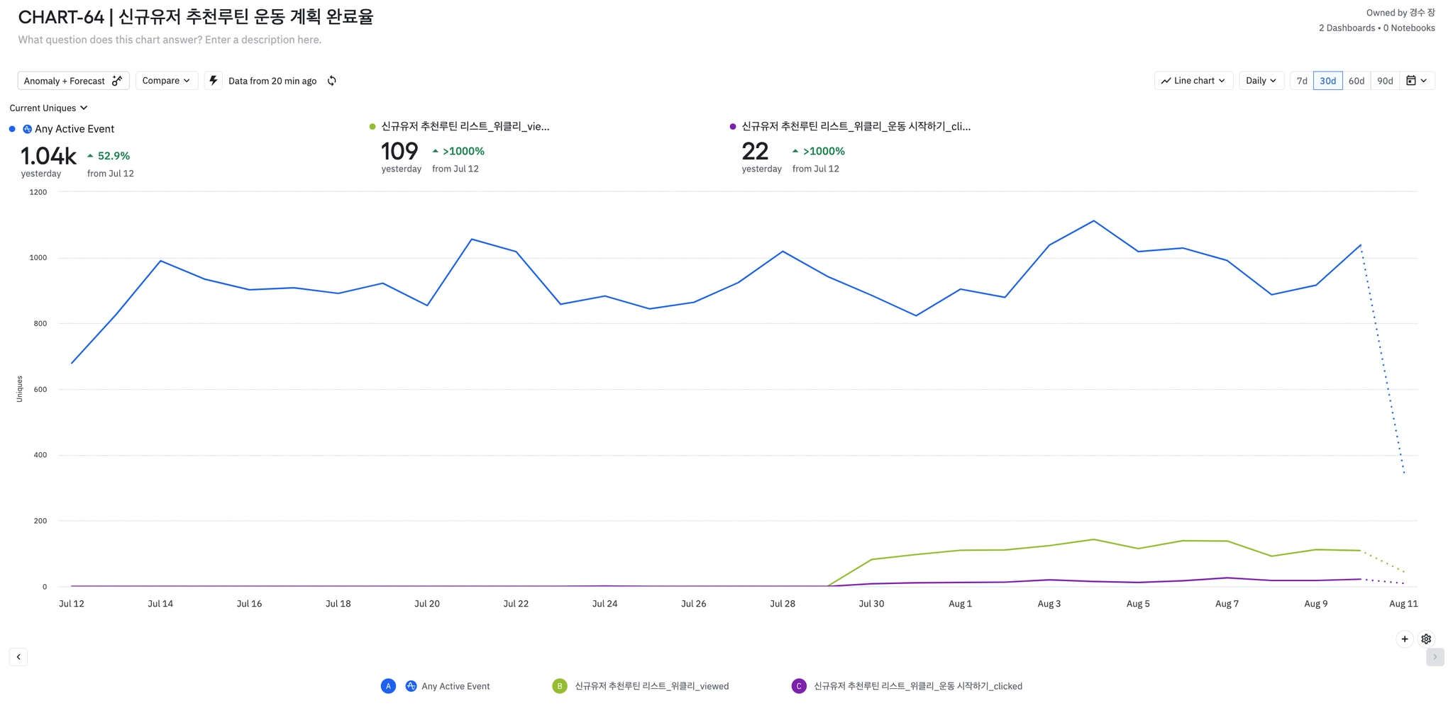추천 루틴 배너 클릭 유저 | 109명 |