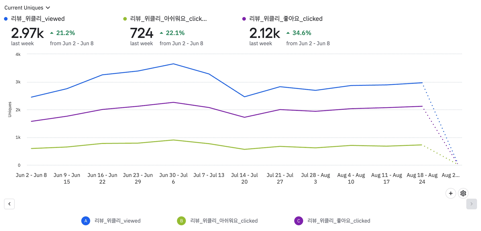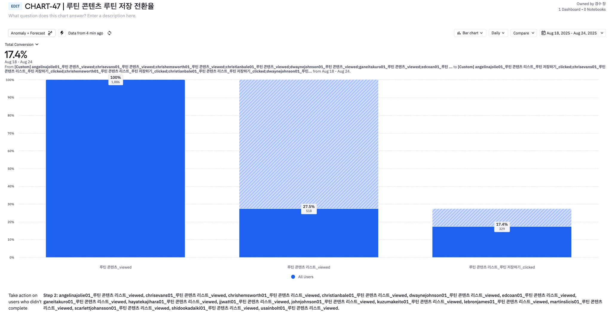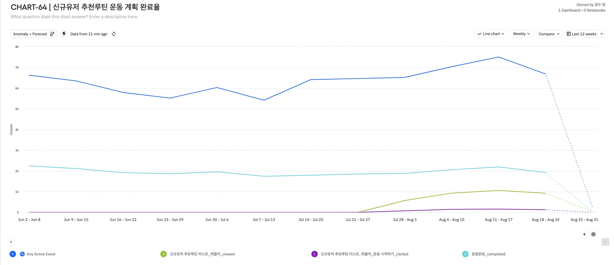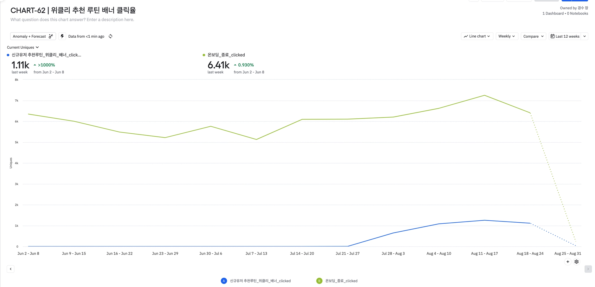 신규유저 추천루틴 위클리 배너 클릭율 정체 중이다.