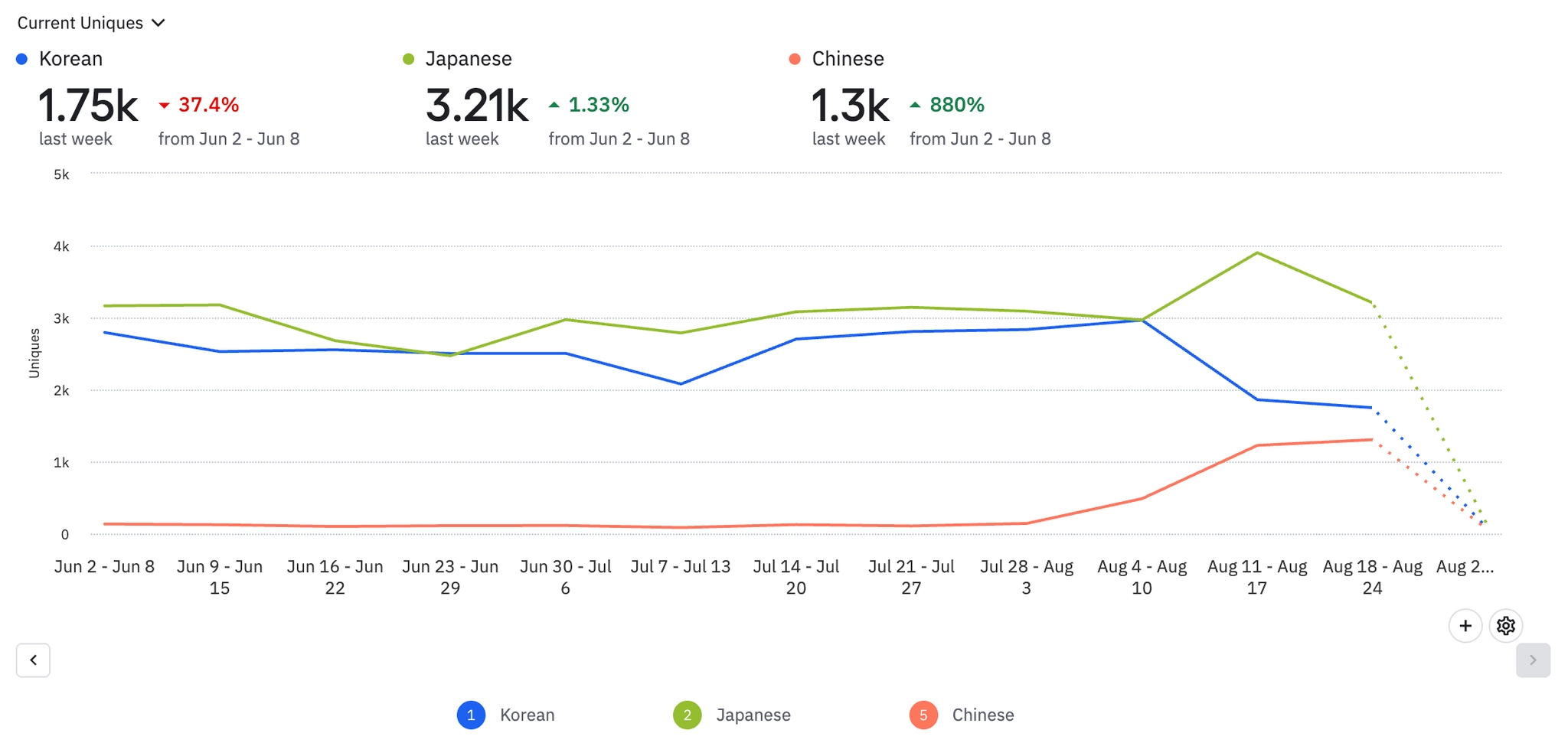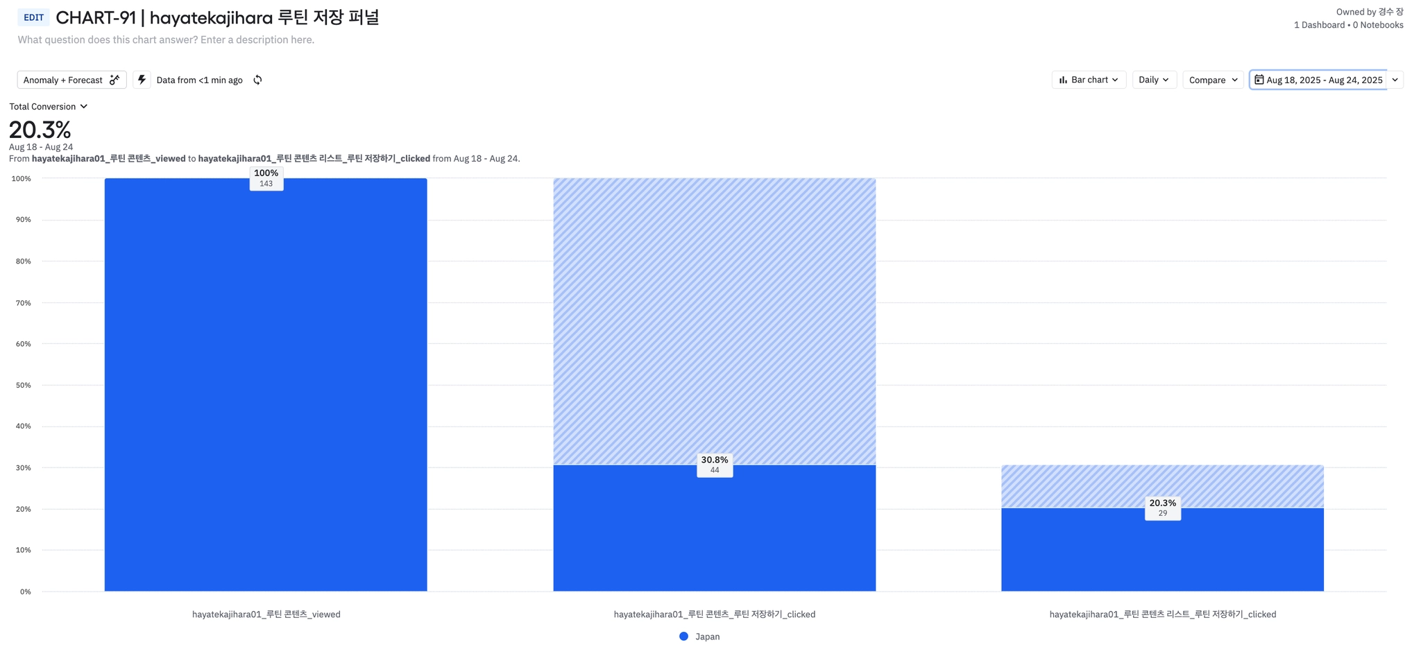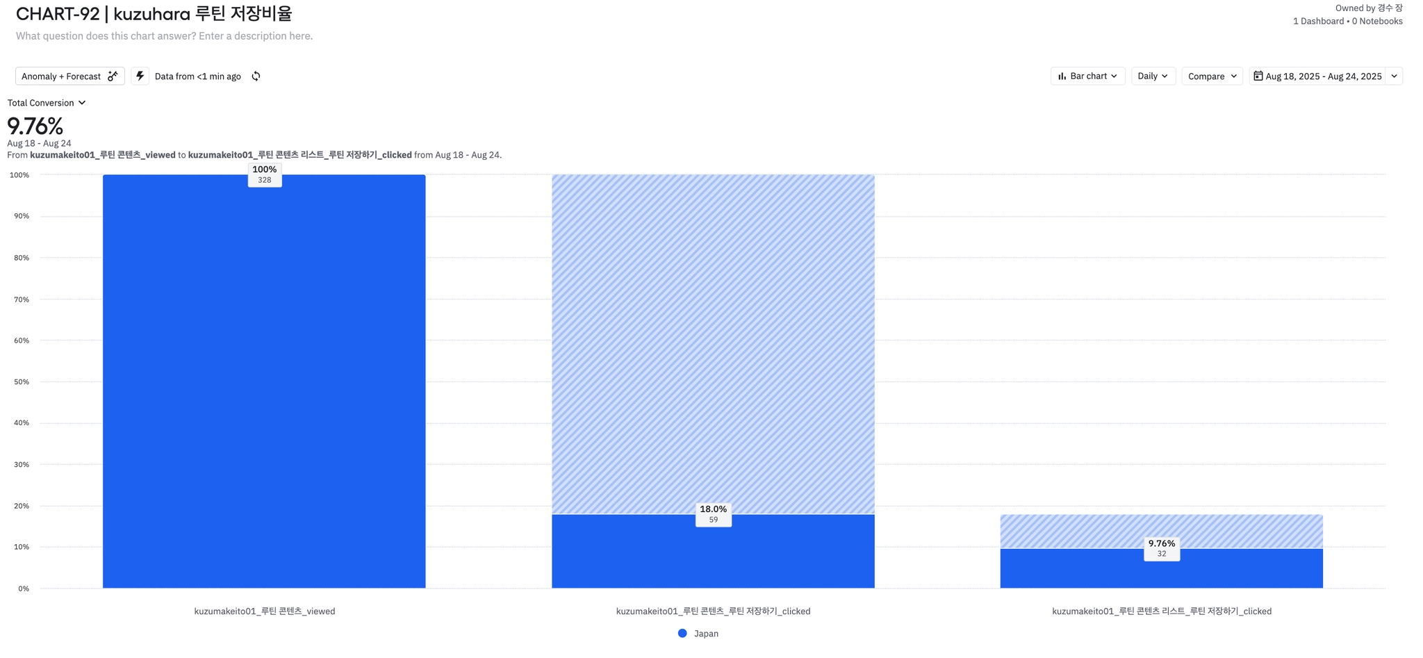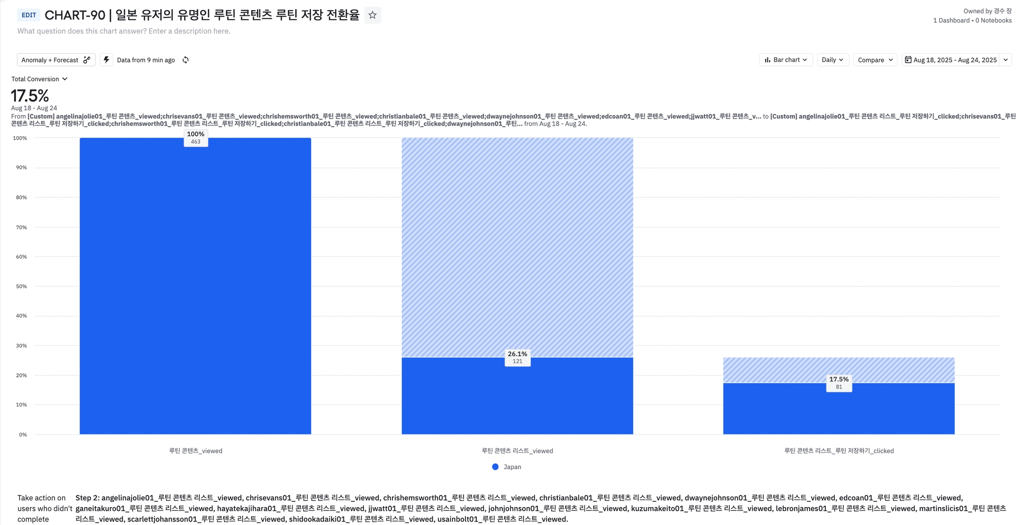 전체적으로 변동성이 없으며 일본 유저의 유명인 저장 비율이 떨어졌다. 다만 hayatekajihara의 저장 완료율은 증가했다.