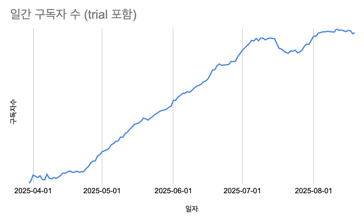 [DEAN] 주간 신규 설치 및 구독 현황 등 (구독 집계 이후인 25.3.30 이후 집계)
