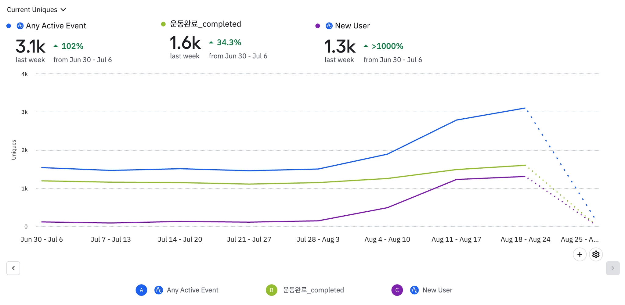 신규 유저 운동 완료 | 2,060 | 2,172 | 1,921 |