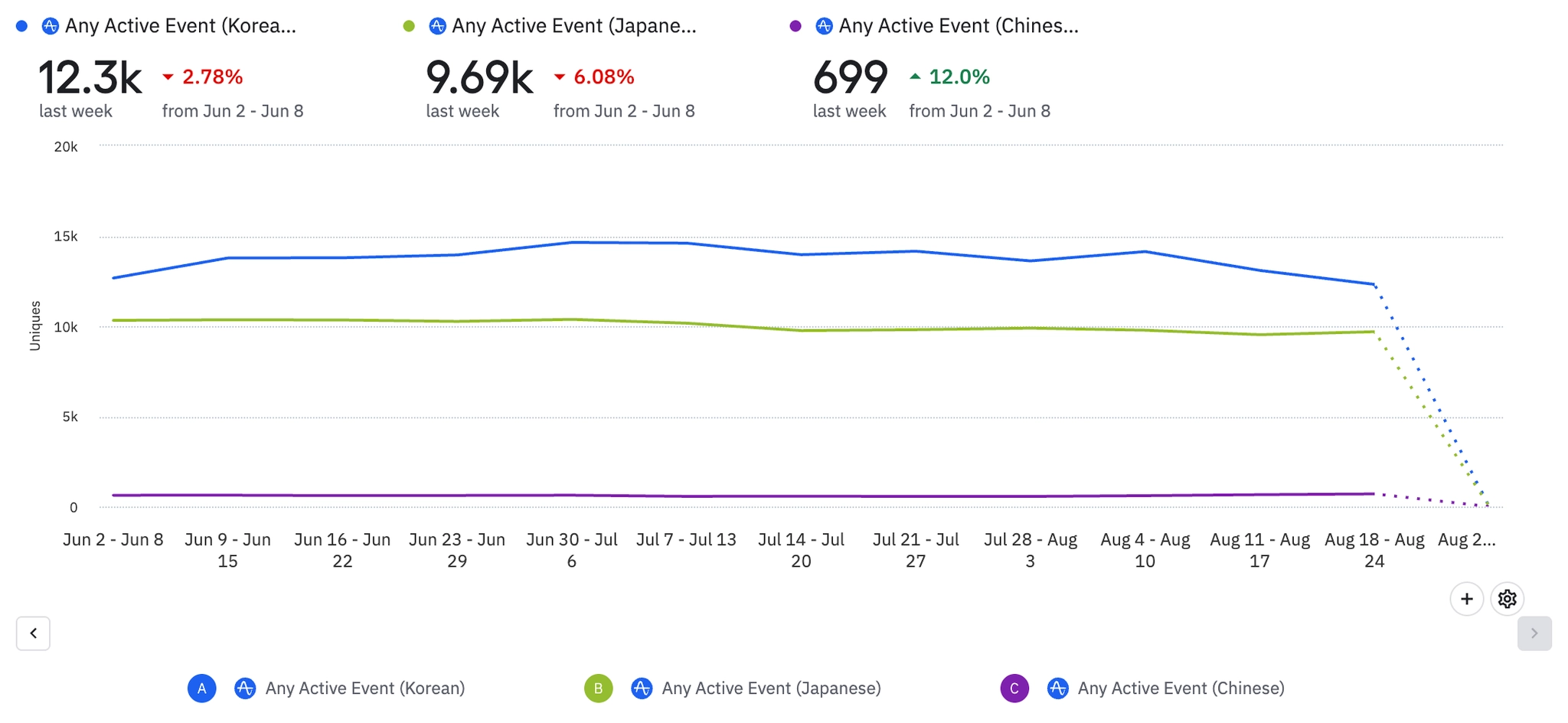 신규 유저 관련 이벤트가 전반적으로 소폭 하락하였다.