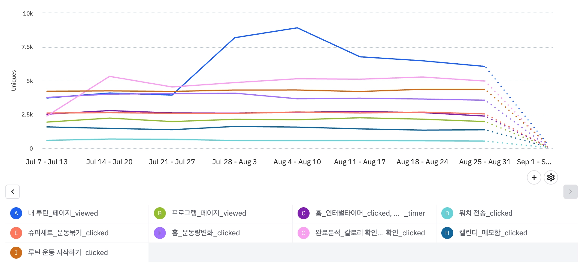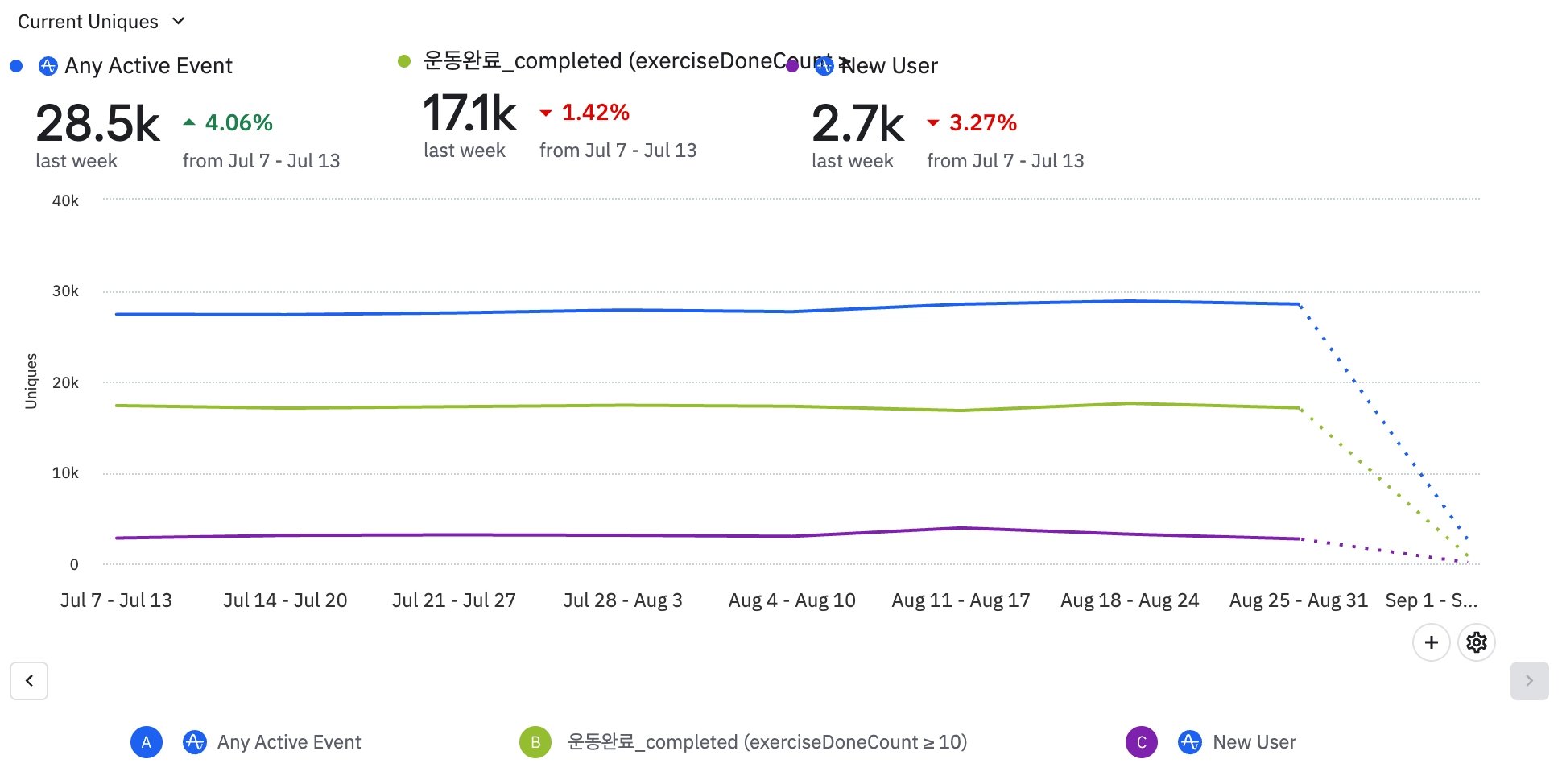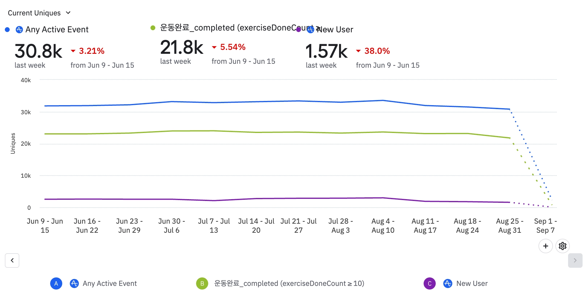 신규 유저 활동이 줄어들면서 전반적으로 이벤트가 감소했다.