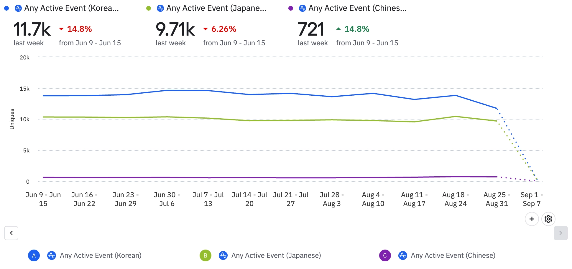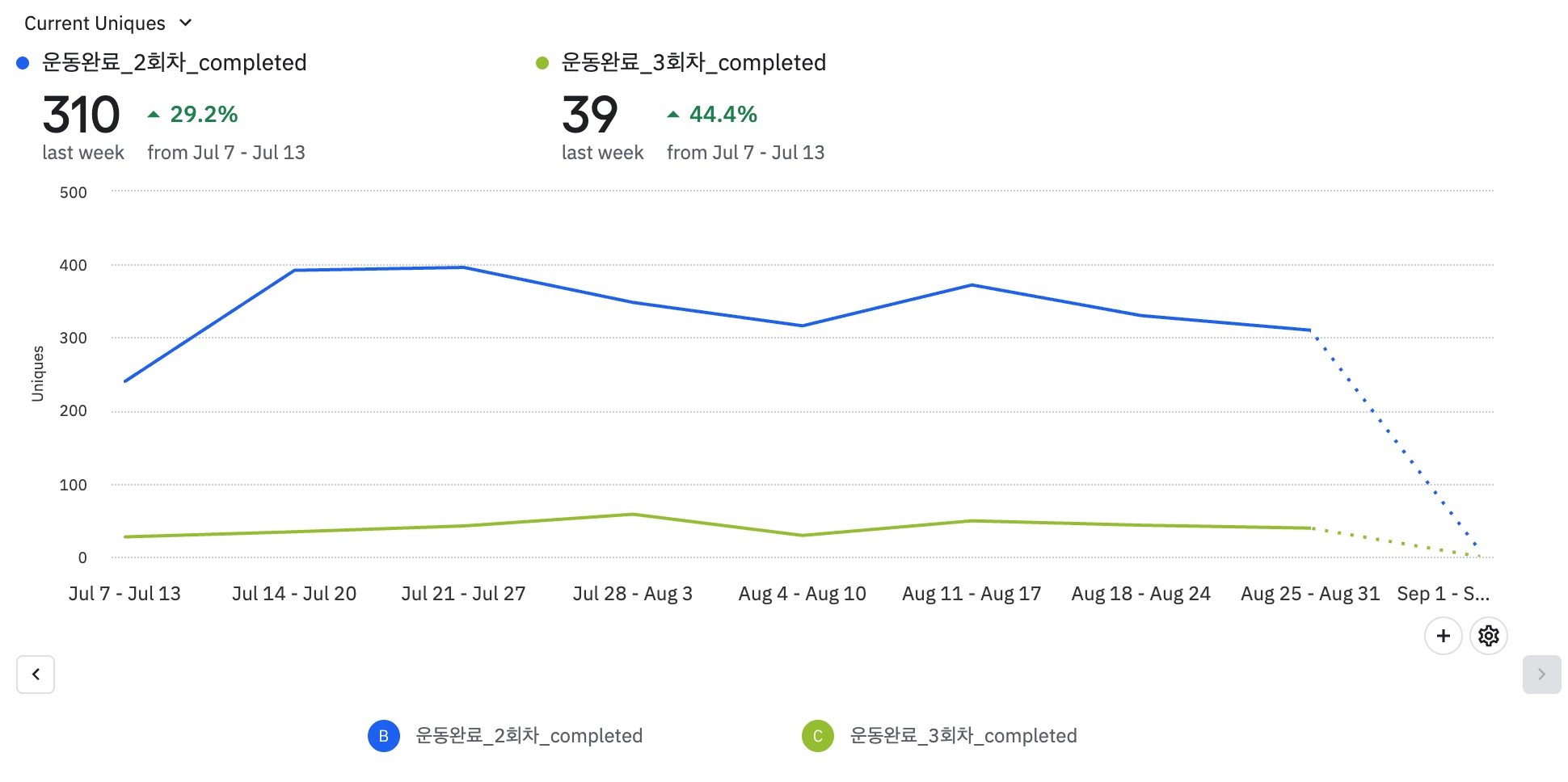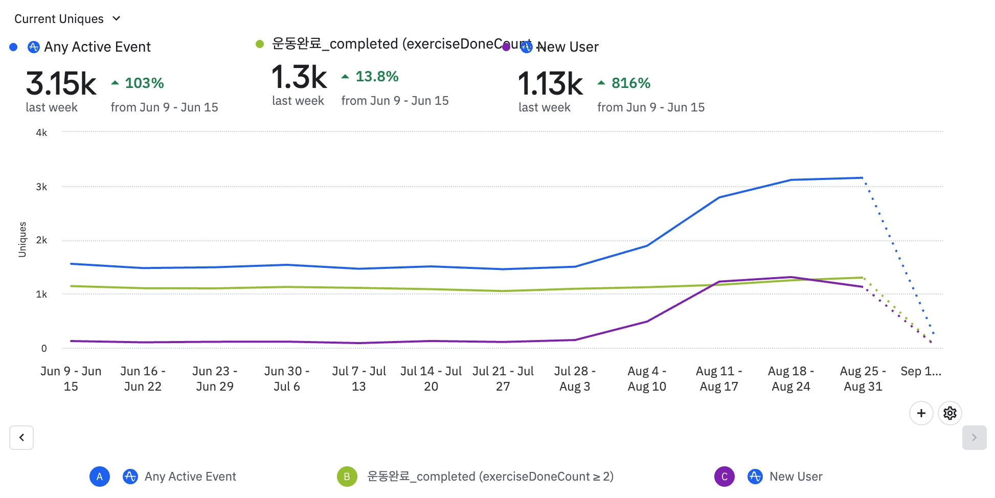 신규 유저 활동이 줄어들면서 전반적으로 이벤트가 감소했다.